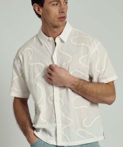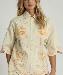 Native Youth Women’s Solstitchery Woven Tops Beach Embroidered Scallop Edge Blouse In White