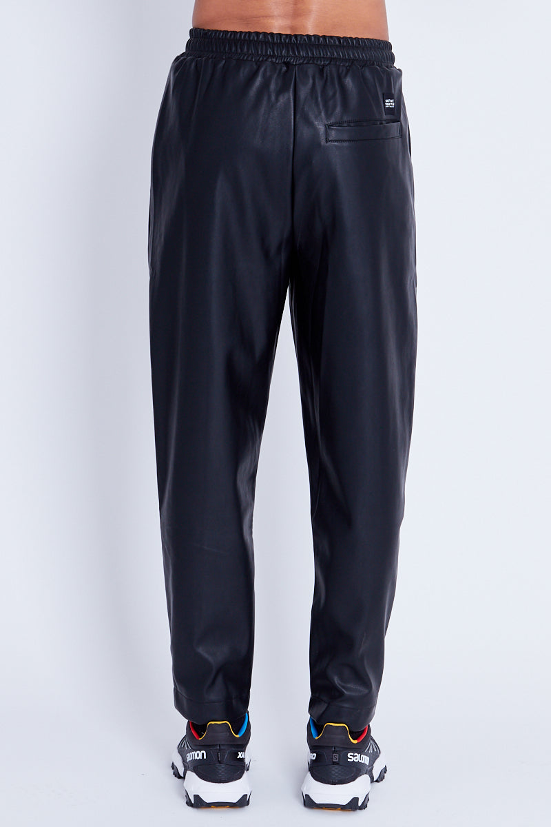 Introducing the Albion Pant, made from a stretchy vegan leather fabric, made to provide comfort and warmth throughout. Designed in a tailored-like regular fit with back slip pockets for a clean-cut look in a black colourway.