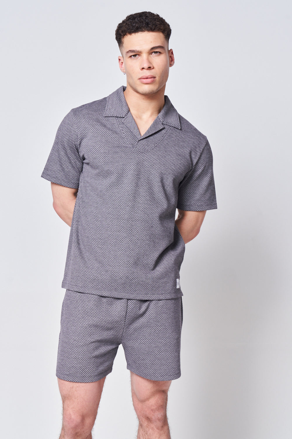 Introducing the Alfie, made with a woven jacquard design throughout, fused with revere collar details to create our SS22 take on the functional summer polo shirt.