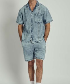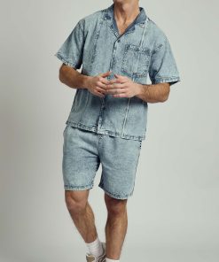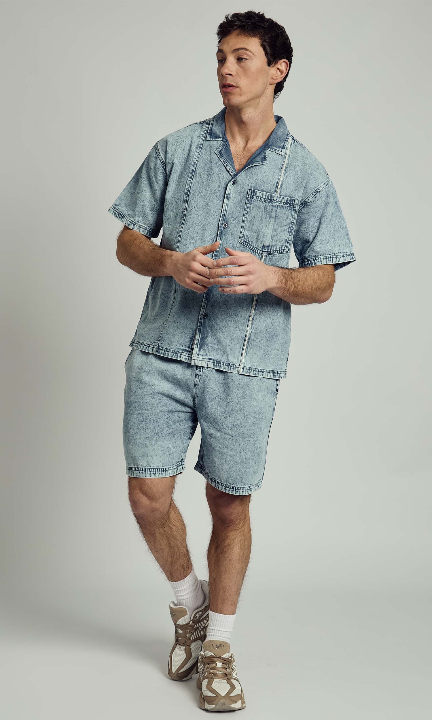 The Men’s Washed Denim Boxy Fit Revere Shirt by Native Youth is a fresh take on a classic staple. Crafted from soft, washed denim, this shirt offers a relaxed, boxy fit for effortless styling. The revere collar adds a laid-back, vintage-inspired touch, while the button-through front ensures versatility. Perfect for layering or wearing solo, this denim shirt is ideal for casual days and summer evenings alike. Pair it with matching denim or tailored shorts for an easy, on-trend look.