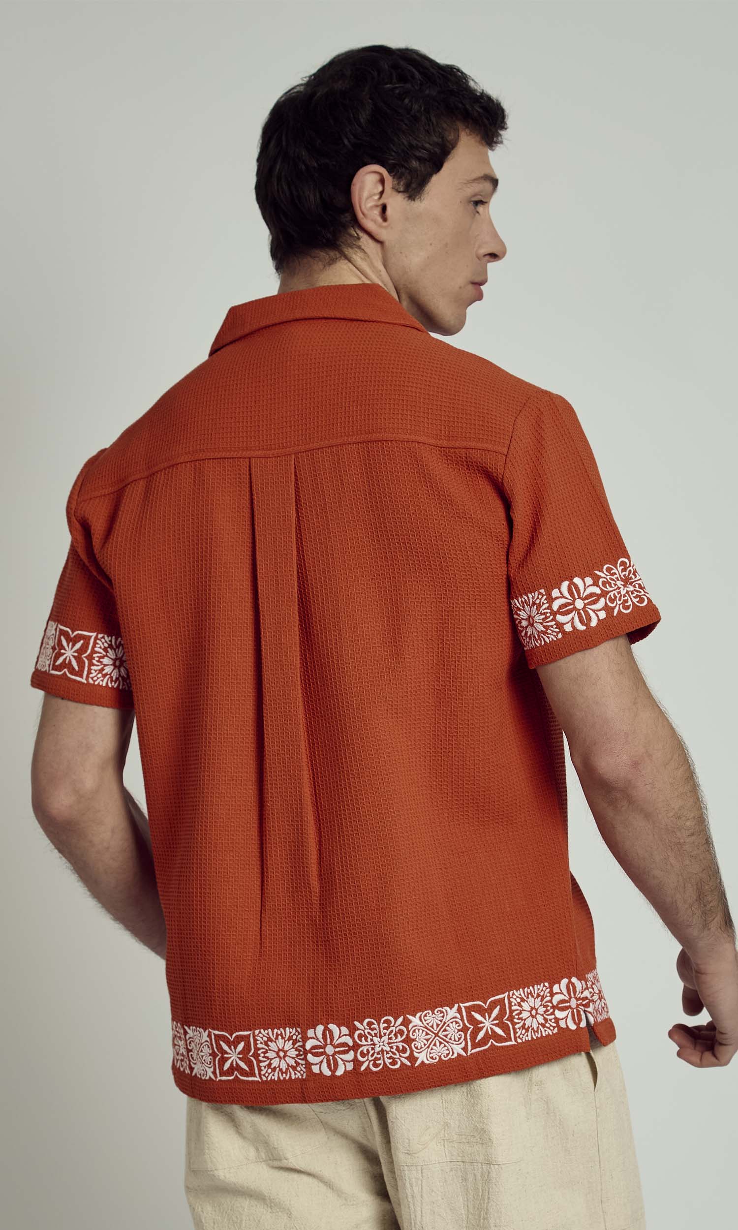 The Men’s Bruce Washed Waffle Shirt with Embroidery is a perfect blend of texture and detail. Crafted from soft, breathable waffle fabric with a washed finish, this shirt offers a relaxed yet refined feel. Subtle embroidery adds a unique touch, elevating the classic design. Featuring a regular fit, button-down front, and a casual revere collar, it’s an effortless choice for layering or wearing solo. Pair it with linen trousers or denim for an easy, stylish look.