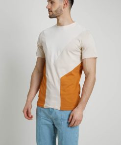 The Capitol tee is a pink, stone and orange colourblock piece.