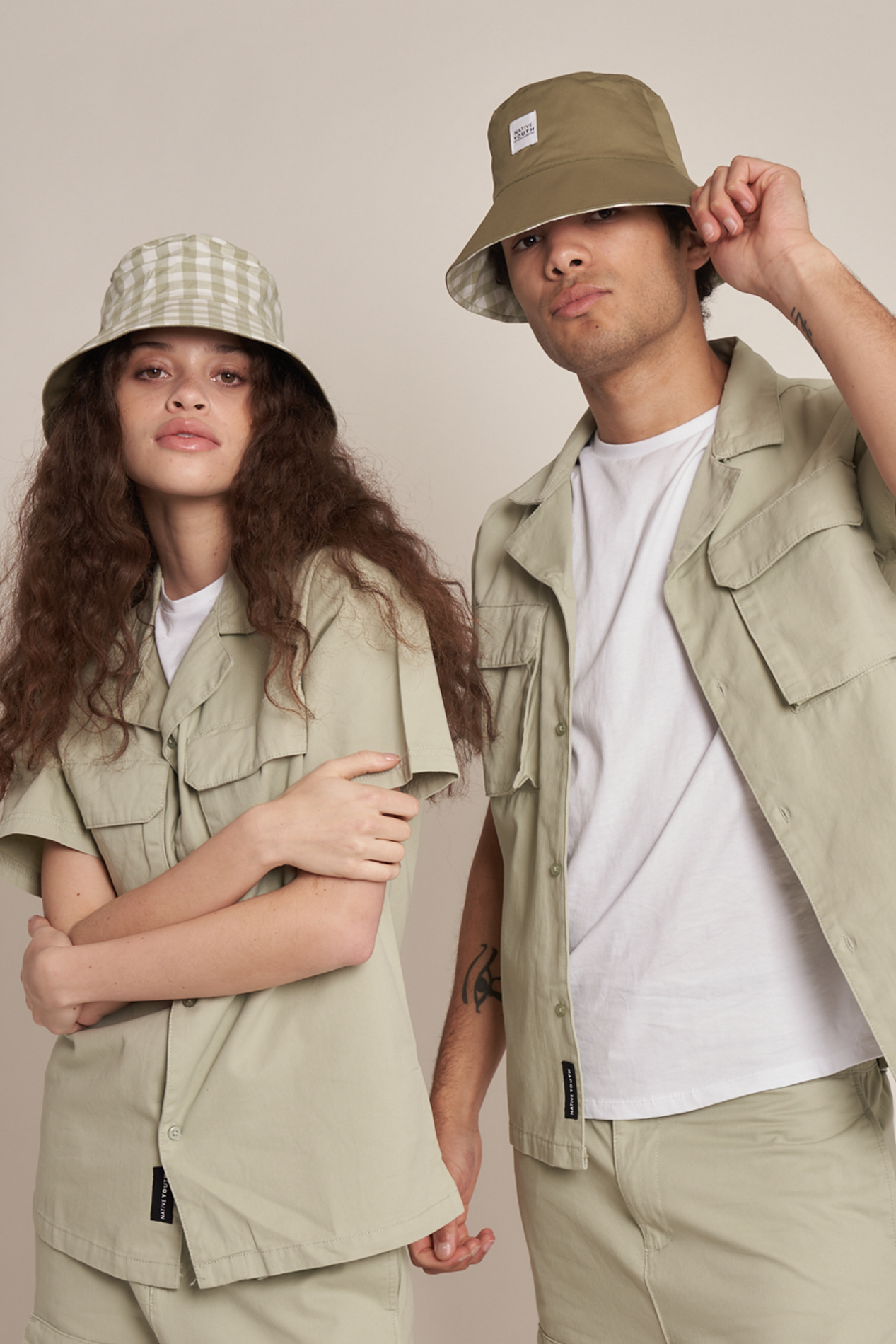 Introducing a first for the spring/summer womenswear collection, the reversible Cardoman Bucket Hat, that can be worn two ways: gingham check or solid khaki.