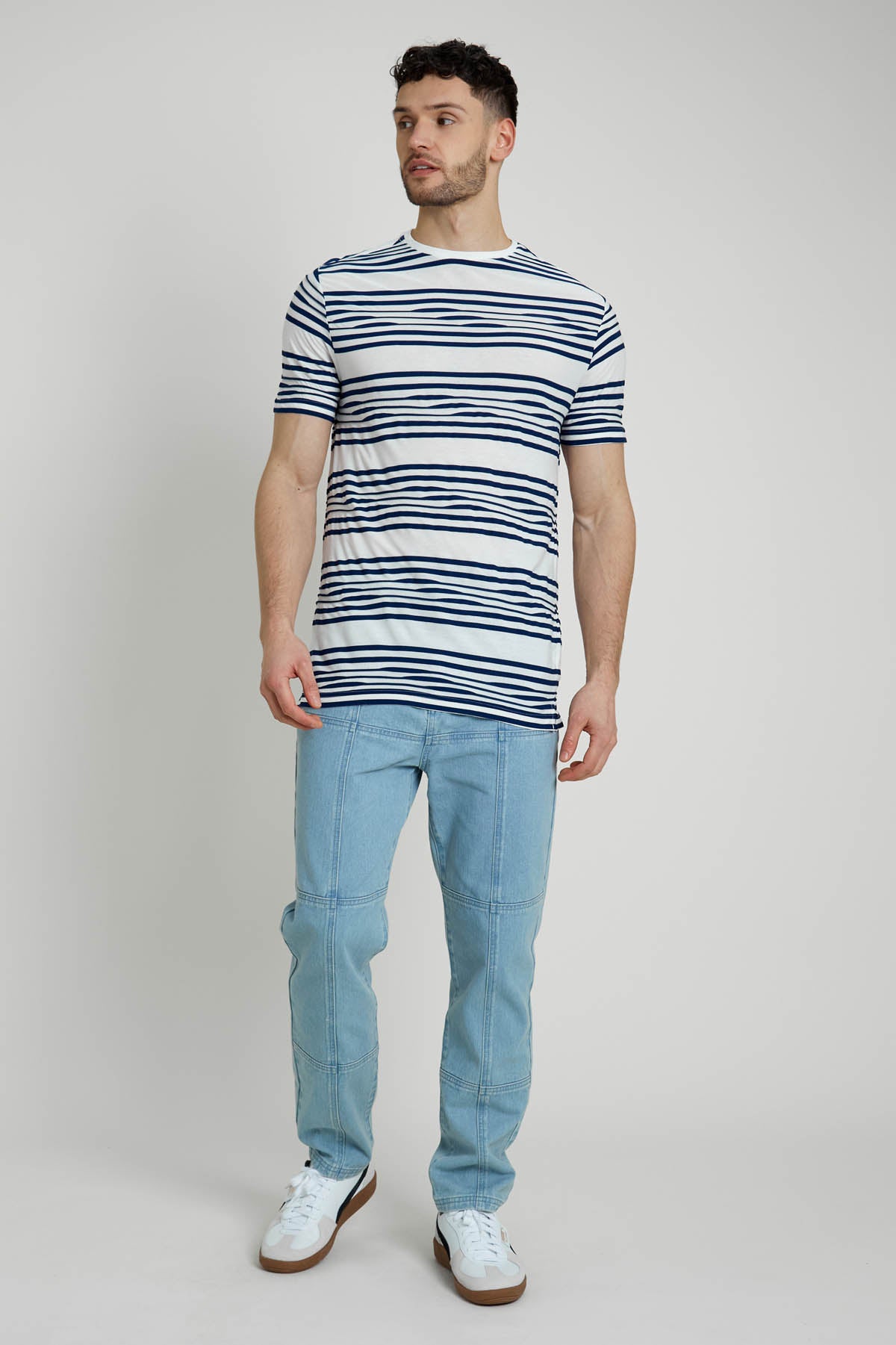 The cascade top is a manipulated stripe tee, featuring a off blue and white colour way. Made from 80% cotton 20% poly this tee is a great summer wardrobe addition and looks great paired with jeans or your favourite shorts.