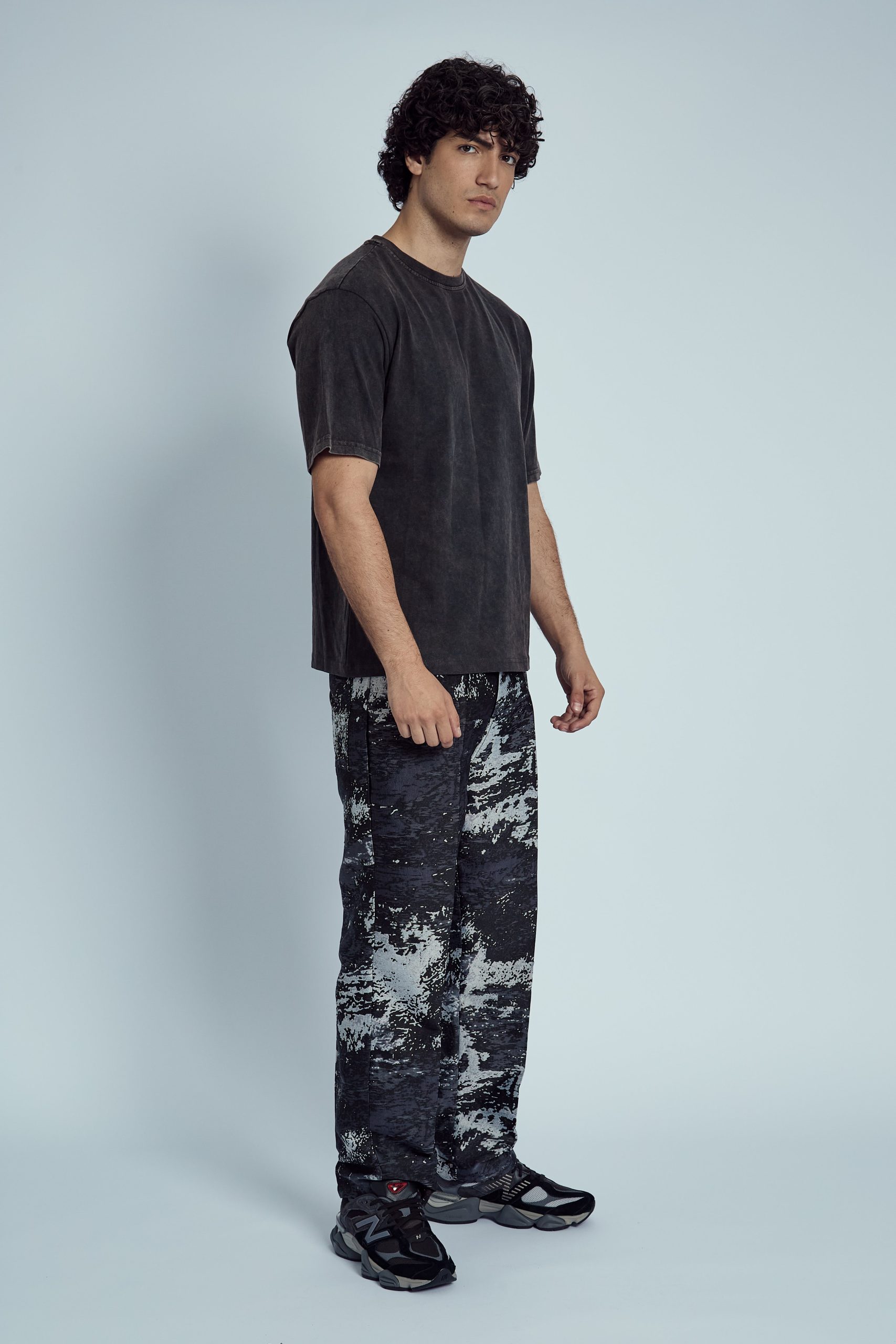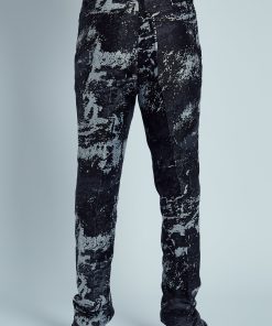 These straight-leg trousers feature a striking marble-effect jacquard texture in black. Crafted from 100% polyester, they offer a structured yet comfortable fit for versatile styling. The marble effect adds depth and character to the classic black trouser, making it an elevated option for both casual and semi-formal wear. Whether worn with a shirt or a casual tee, these trousers bring a refined, modern touch to your wardrobe.