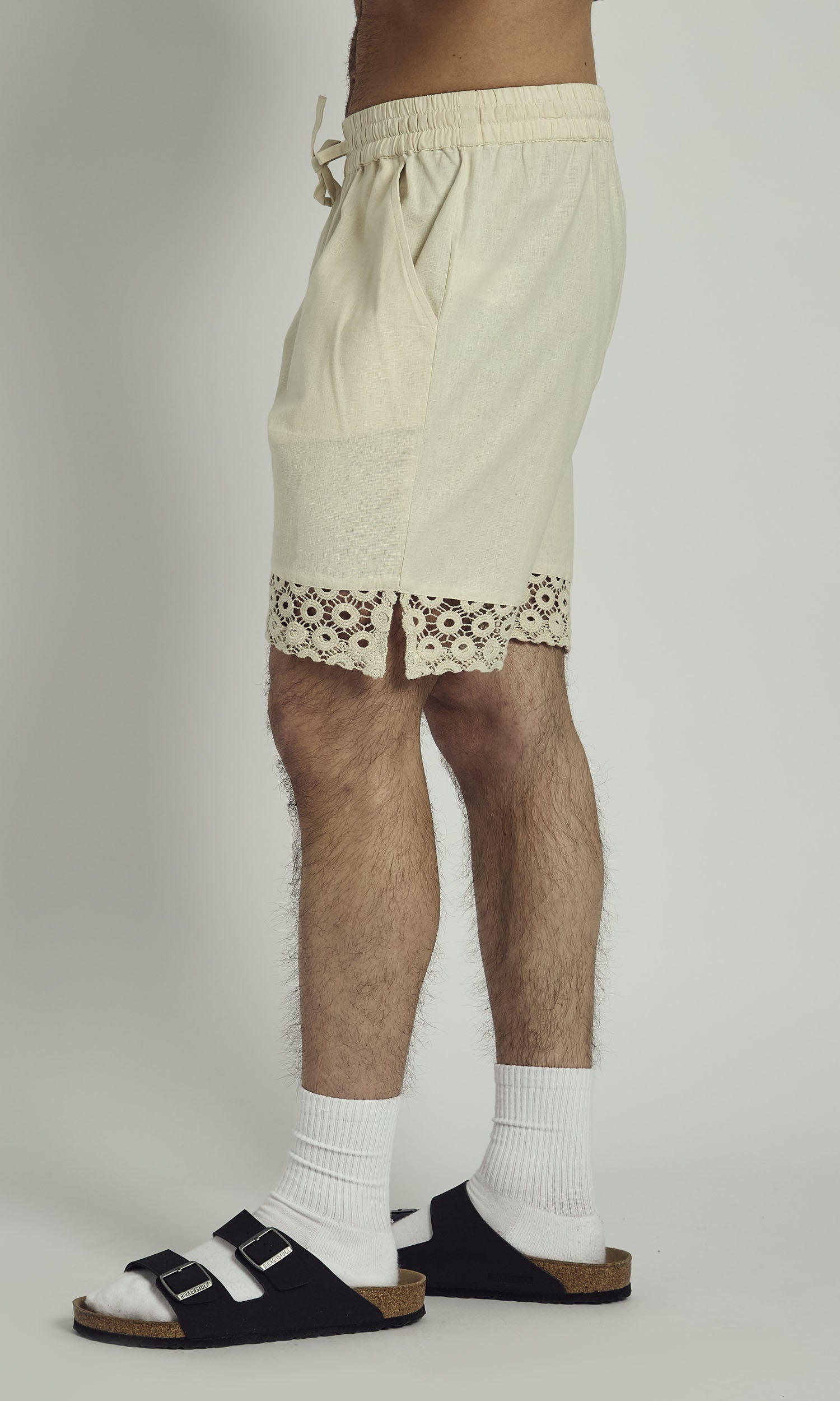 CLAY LINEN SHORT WITH CROCHET PANEL