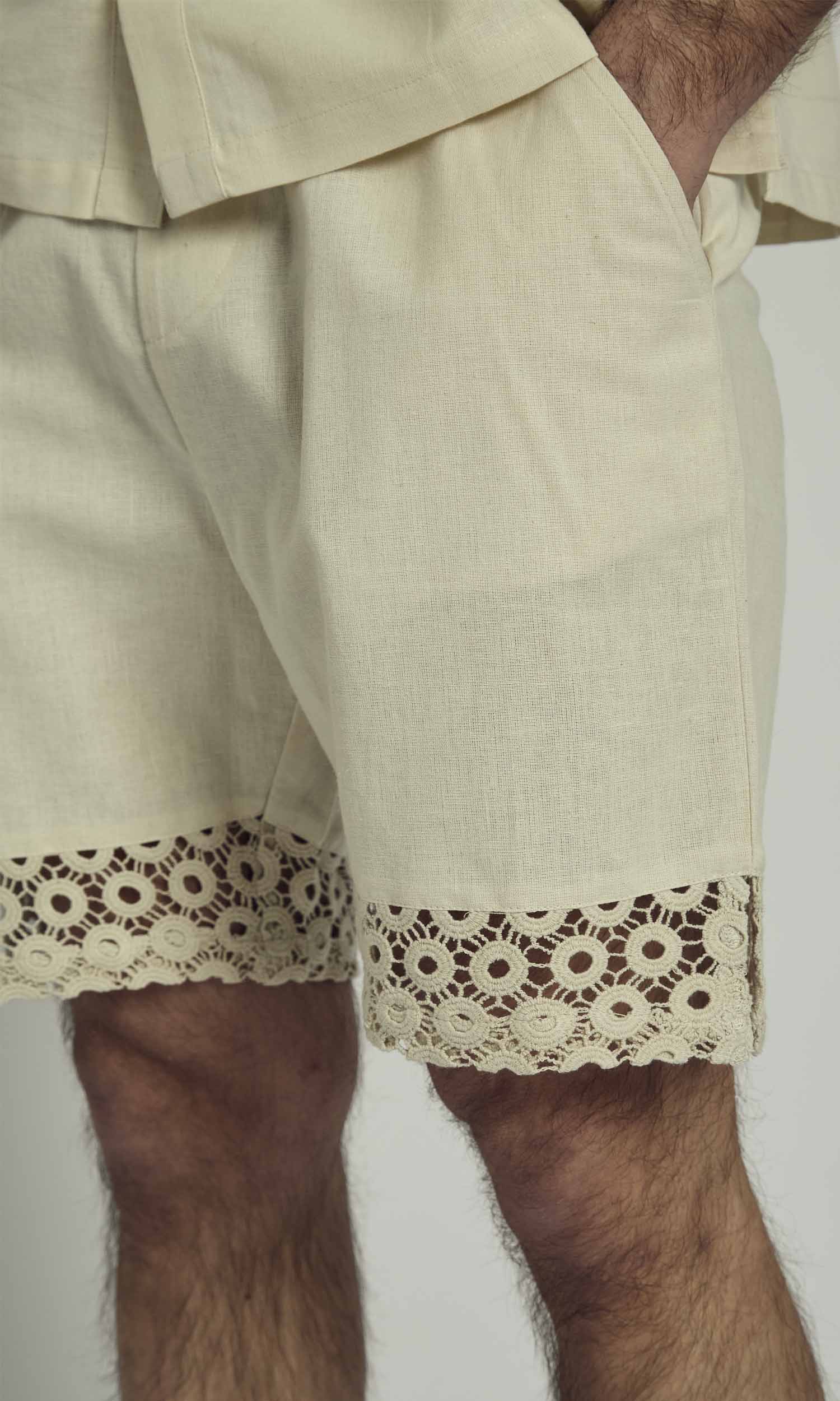 The Men’s Clay Linen Short with Crochet Panel is a perfect blend of relaxed tailoring and intricate detailing. Crafted from a breathable linen blend, these shorts offer a lightweight and comfortable fit, ideal for warm-weather styling. The standout crochet panel adds a unique texture and artisanal touch, elevating the design. Featuring an elasticated waistband with an adjustable drawstring for a custom fit, side pockets for functionality, and a relaxed silhouette, these shorts are effortlessly stylish. Pair them with a linen shirt or a simple tee for a laid-back yet refined summer look.