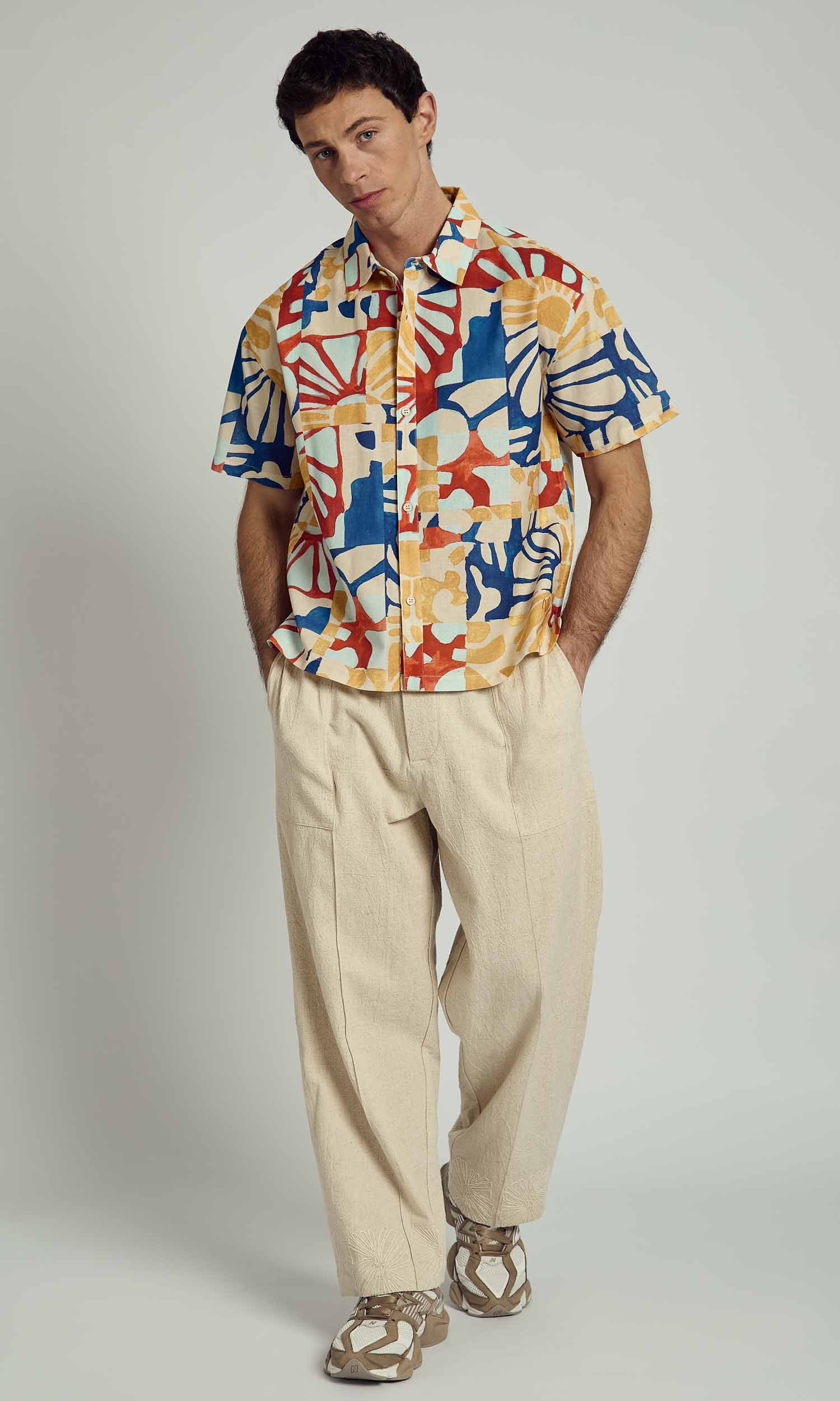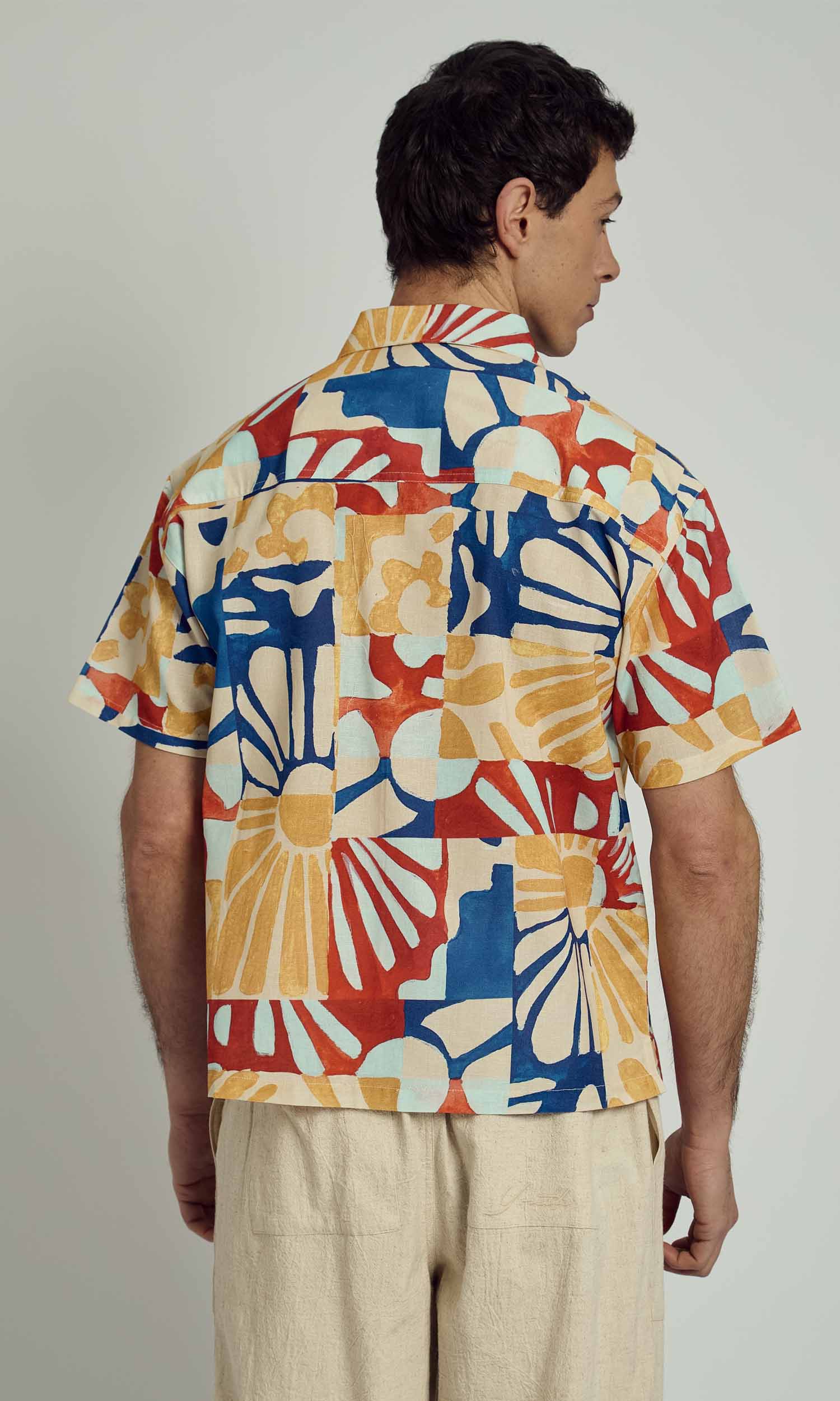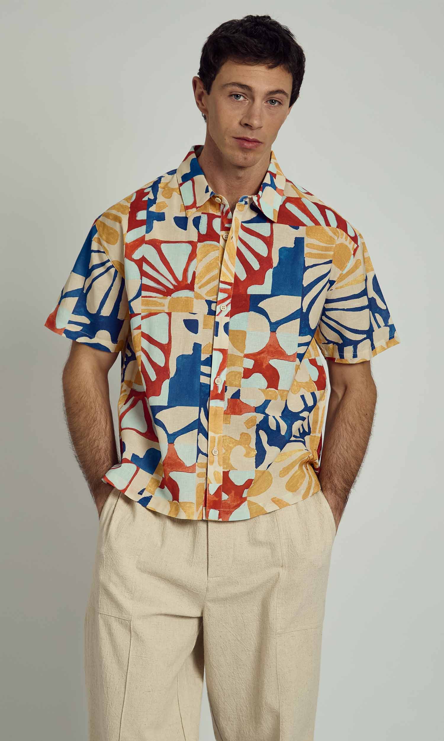 COLLAGECLIPSE PRINTED LINEN MIX BOXY FIT SHIRT