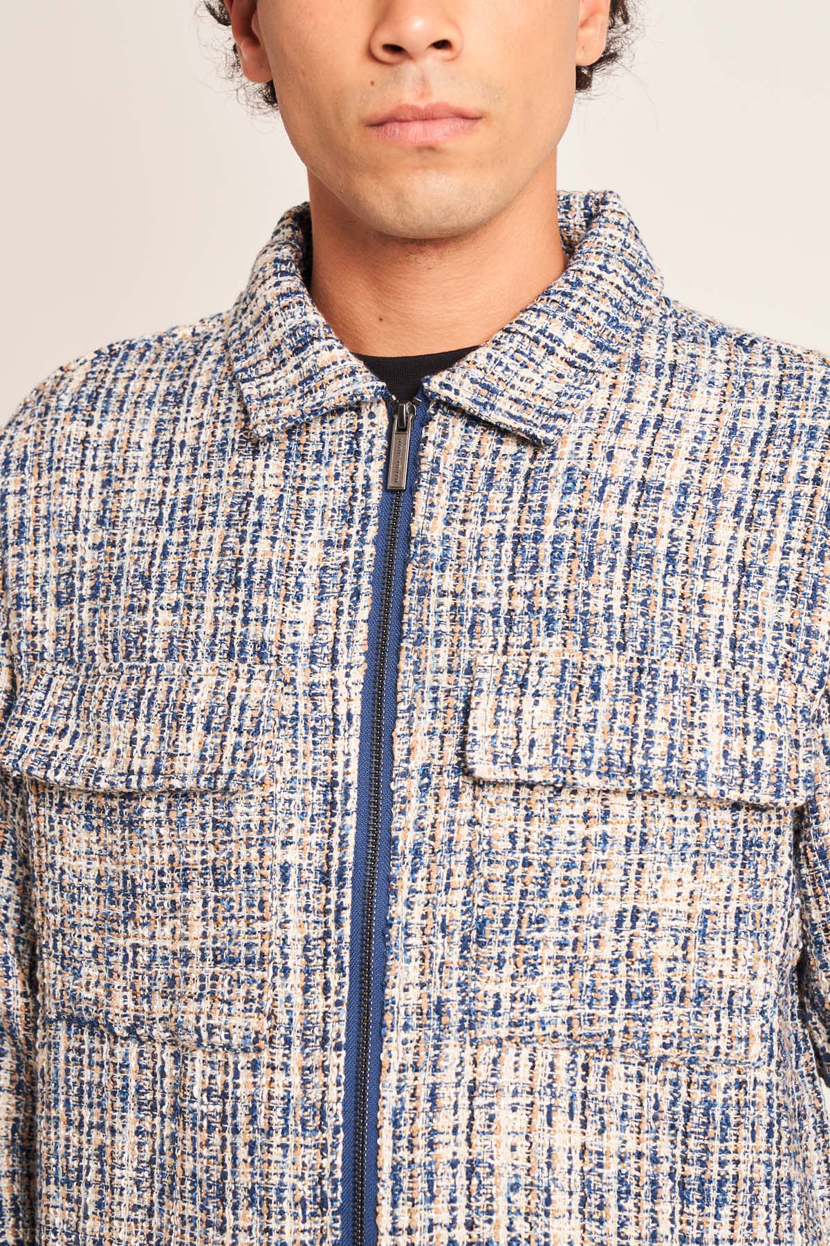 The perfect transitional jacket, introducing the Cooper jacket. Constructed in an overshirt fit from textured boucle fabric and featuring a zip front fastening.