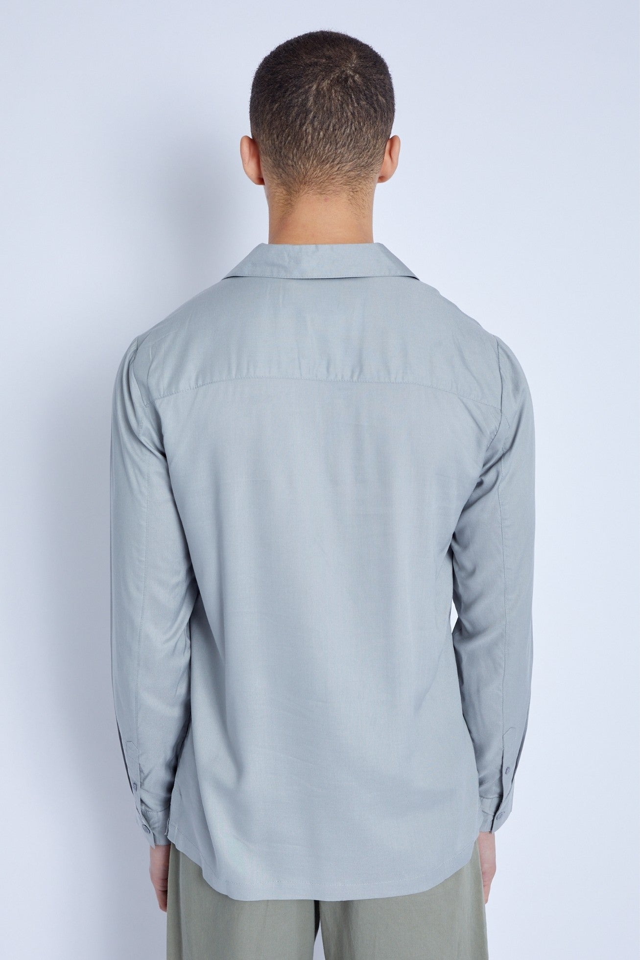 Introducing the Cornmint Overshirt. The classic revere collar shirt gets a SS21 utility upgrade, with a functional oversized pocket. Made from silky sustainable LENZING™ ECOVERO™ viscose fabric for warmer conditions.