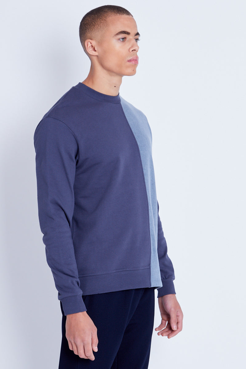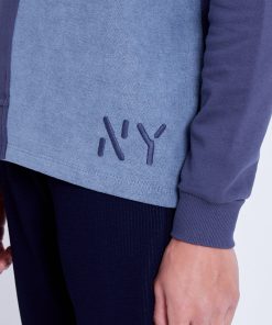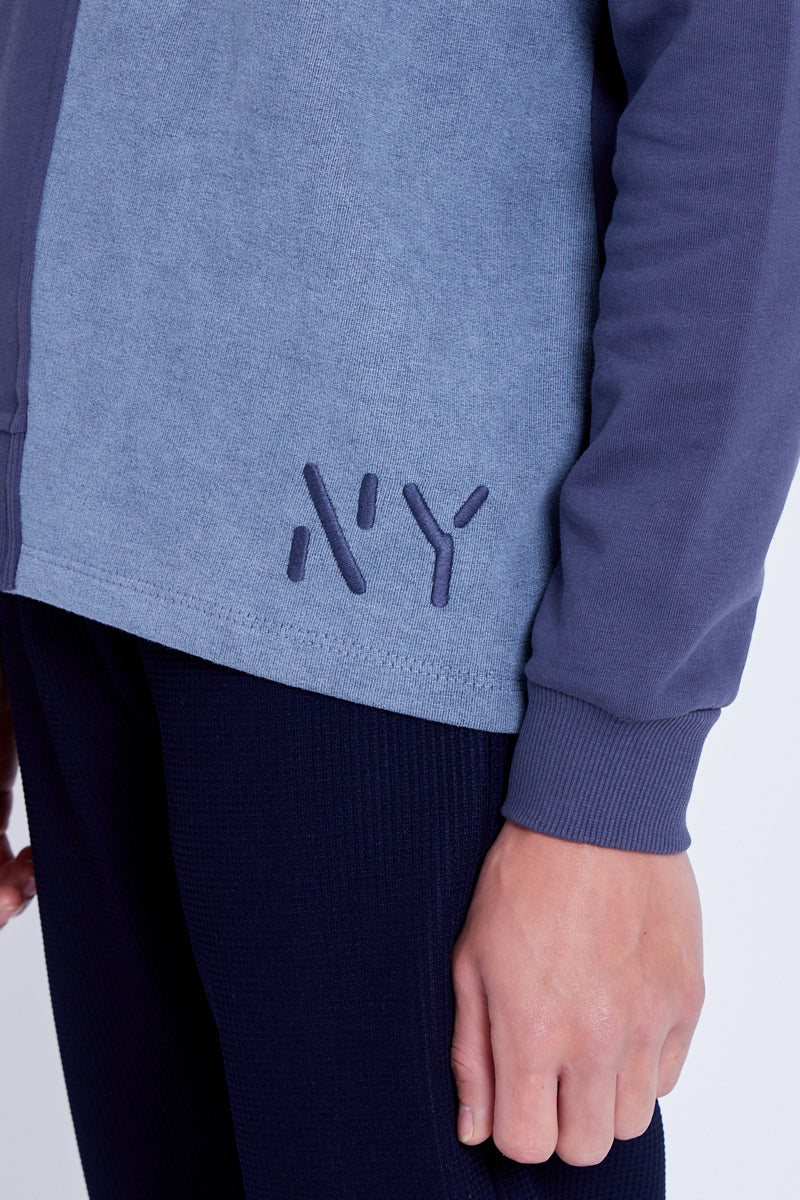 Introducing the Crane Sweatshirt, coming in a split washed navy and gunmetal grey design with stencil NY logo at hem. Take your loungewear fit to the next level when matching a simple jogger with this transitional sweat.