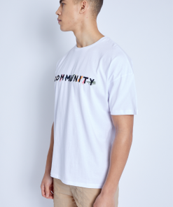 Introducing the Davana T-Shirt, our classic clean white t-shirt layered with embroidered ‘community’ wording on chest and finished with signature NY patch logo at hem.