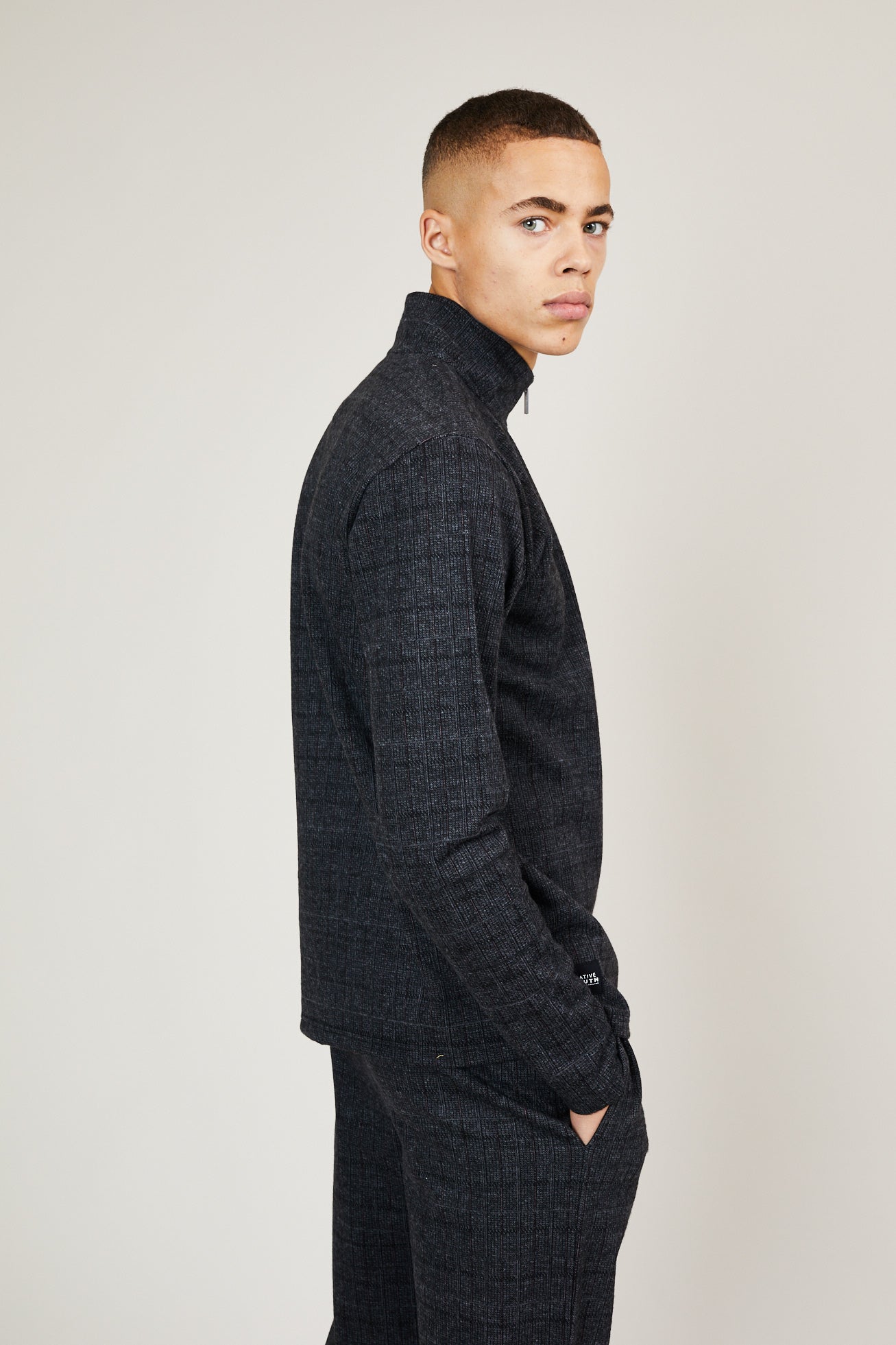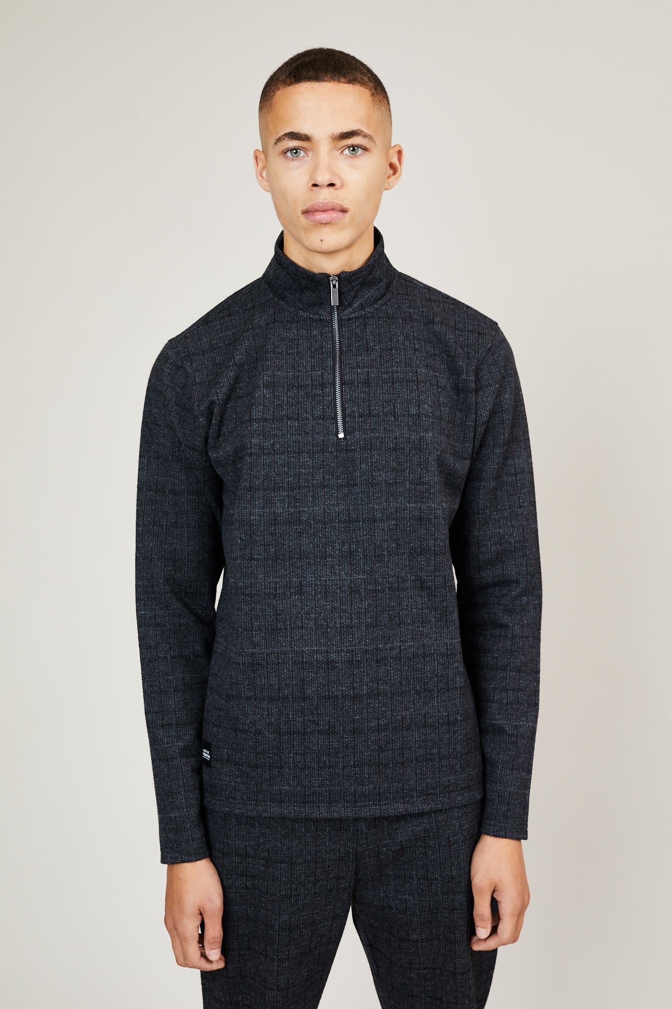 Introducing the Delon Sweat, a 1/2 zip sweat in all over dark grey check. The long sleeve sweat features a polo neck and has a clean finish to the cuffs and hem. Finished with a Native Youth hem label and straight hem.