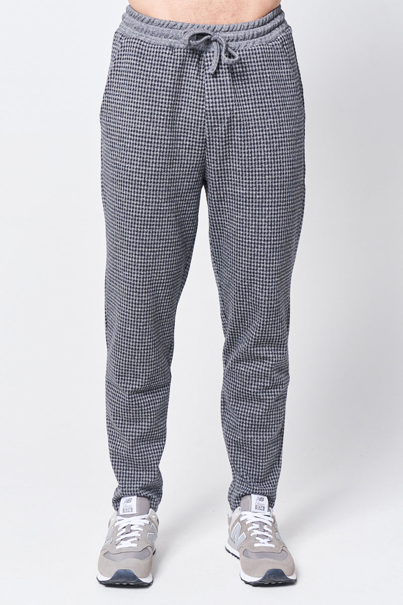 Introducing the Eddison, fusing true jogger style with tailored details to create a smart but casual jacquard-gingham pant. Adjustable drawstring waistband with statement NY logo on reverse.