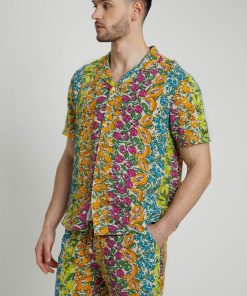 Elevate your look with the playful fruit print design, adding a pop of colour and personality to your outfit. Whether paired with denim shorts or matching printed shorts, the Etaerio Fruit Printed Ecovero Viscose Shirt is sure to brighten up your day with its cheerful aesthetic.