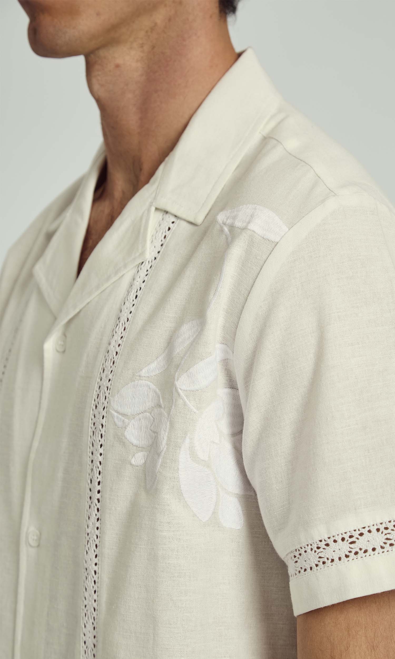 FELIX REVERE SHIRT WITH LACE TRIM AND EMBROIDERY DETAILING