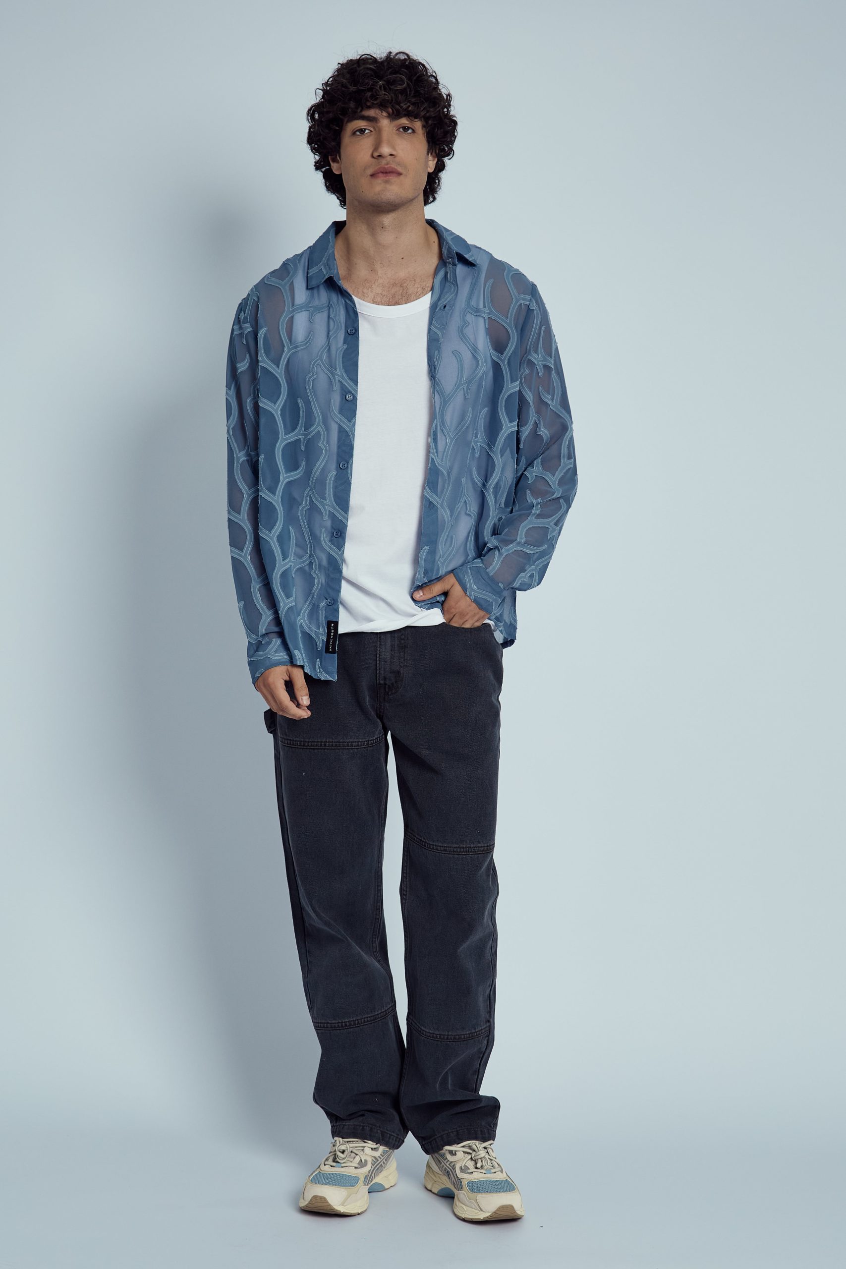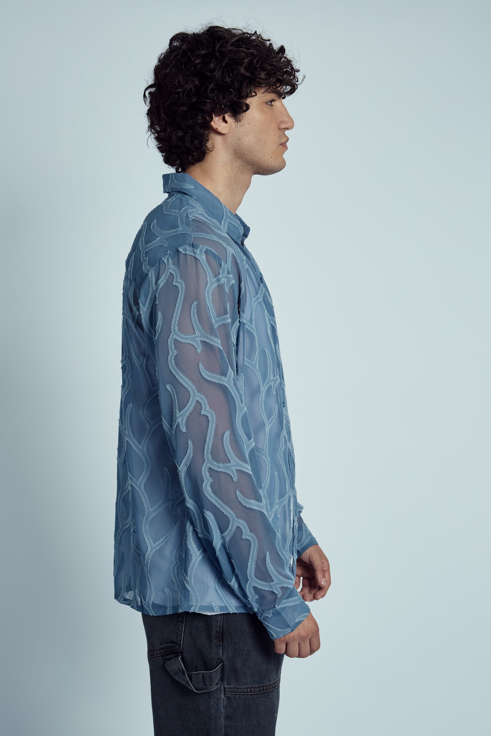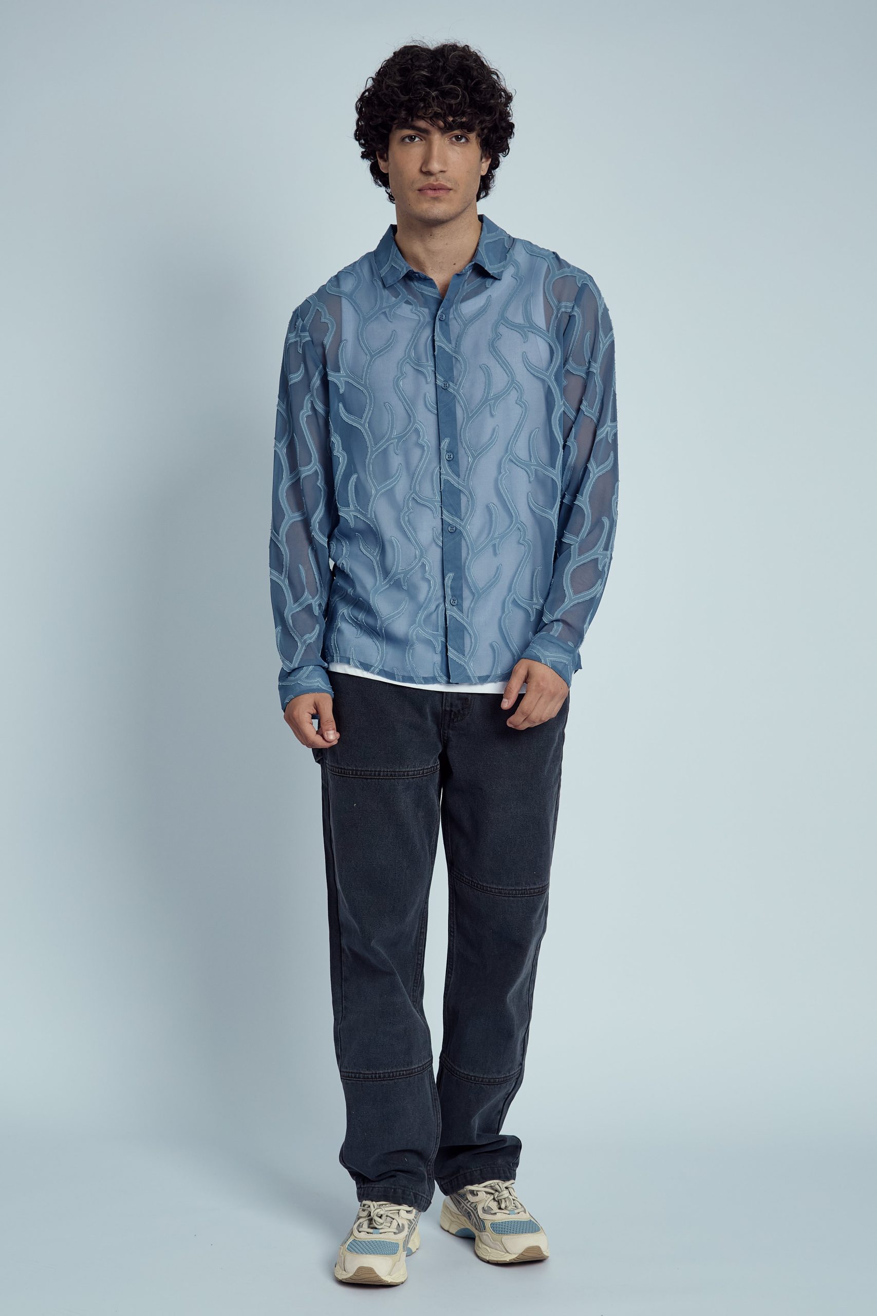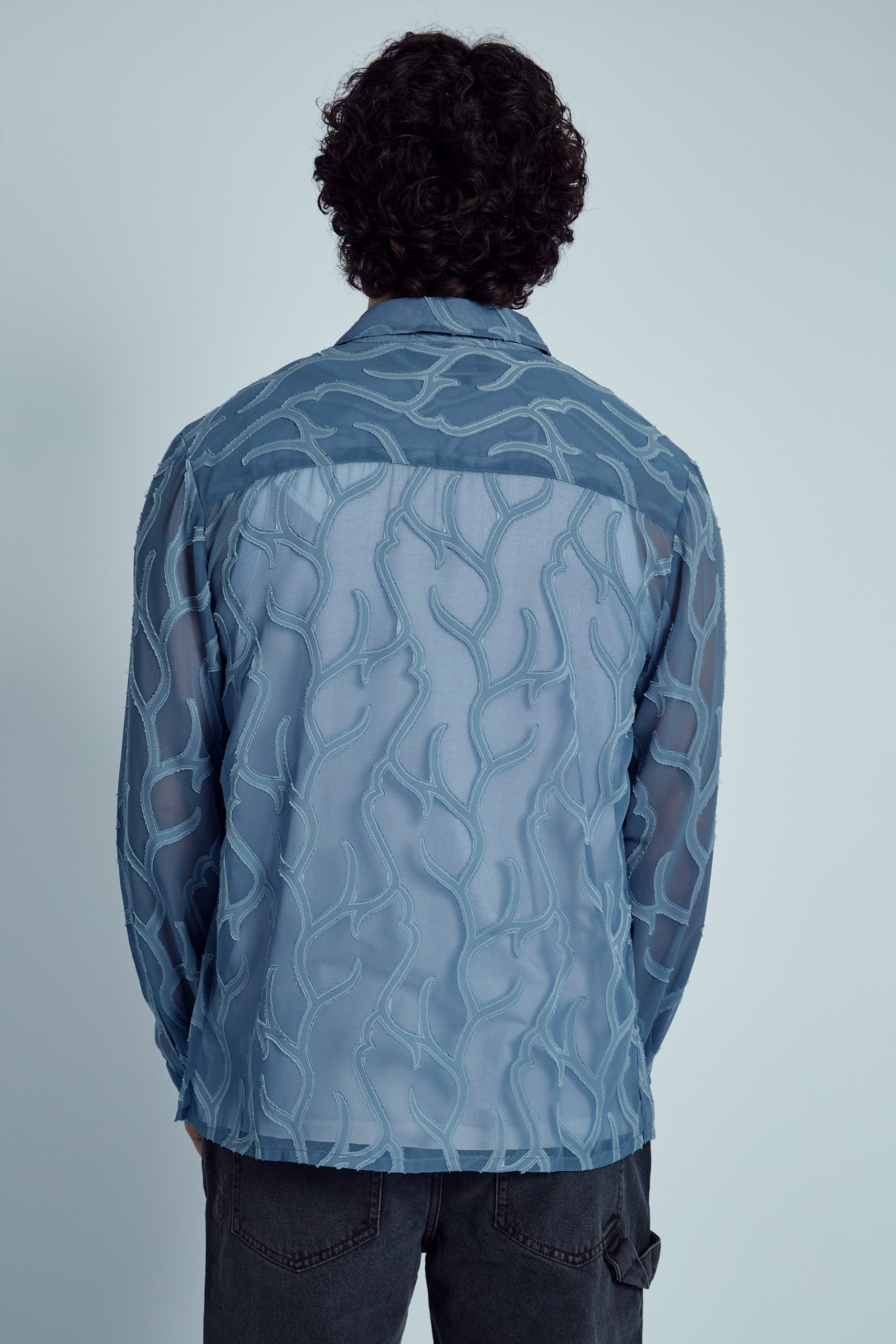 The regular fit ensures a comfortable, tailored silhouette that complements a variety of body types, while the captivating blue hue adds a fresh, modern edge. Whether you’re styling it for a night out or layering it under a jacket for a polished look, the Gustin Devore Abstract Burnout Shirt is the perfect choice for making a bold, fashion-forward statement.