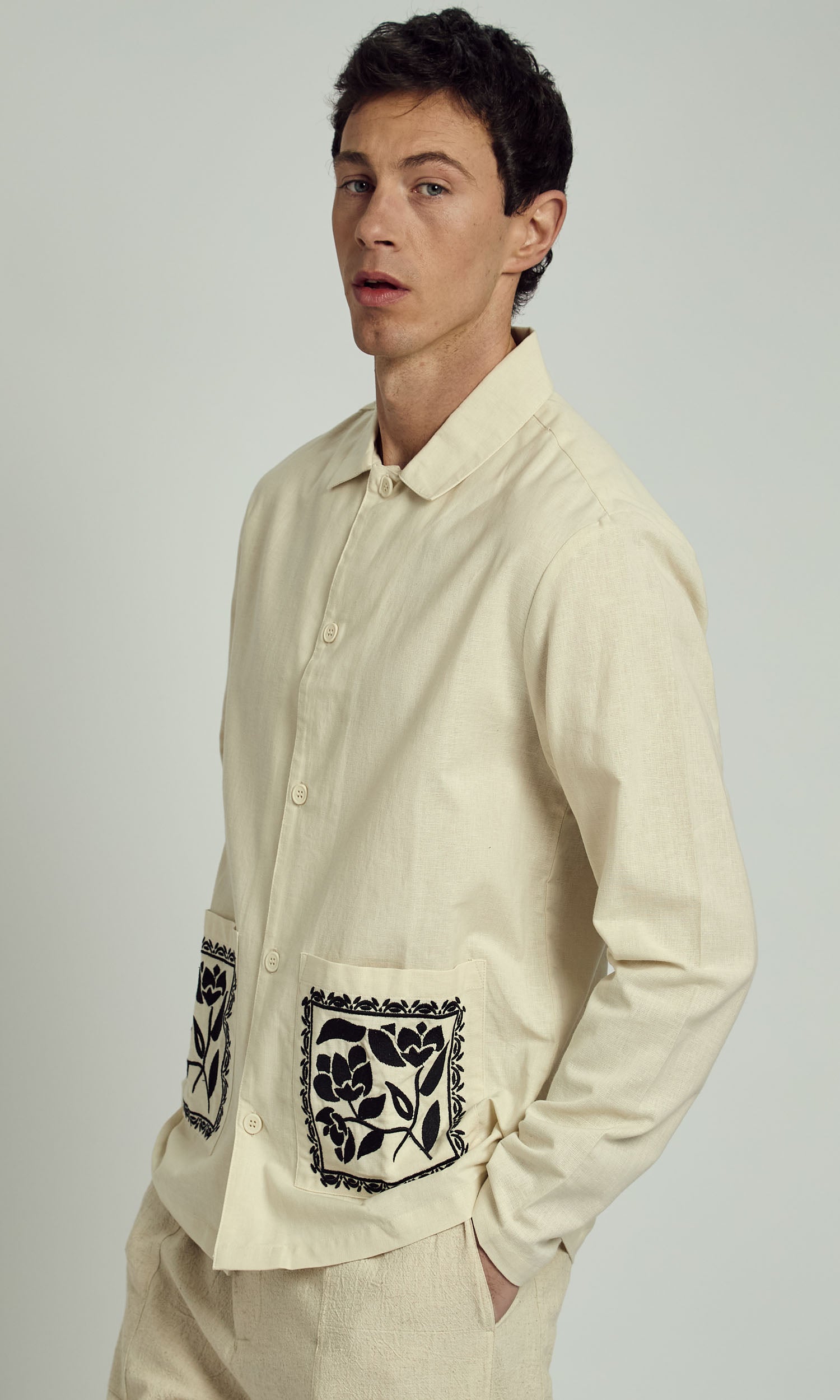 HARLEM EMBROIDERED COLLAR OVERSHIRT IN NATURAL