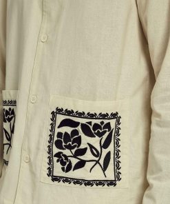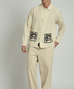 A Long Sleeve Native Youth Embroidered Collar Overshirt in Natural – a timeless piece with a modern twist. Crafted from a soft, breathable fabric in a neutral tone, this overshirt features intricate embroidery on the collar for a subtle yet stylish detail. Designed with a relaxed fit, button-down front, and long sleeves, it’s perfect for layering over a tee or styling as a standalone statement. A versatile wardrobe essential that pairs effortlessly with both casual and smart looks.