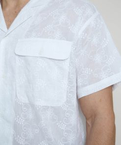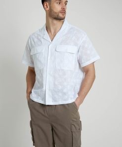 Introducing the Harmon Lace Jacquard Boxy Fit Shirt with Chest Pockets, a fusion of elegance and modernity. Crafted with short sleeves and a straight hem, this shirt exudes a relaxed yet refined silhouette, perfect for various occasions. The button-front design ensures effortless wear, while the revere collar adds a touch of timeless sophistication. Accentuating its charm, the shirt features chest pockets that offer both functionality and style. Elevate your ensemble with the intricate lace jacquard pattern, adding depth and texture to the design. Whether paired with tailored trousers or denim for a more casual look, the Harmon Lace Jacquard Boxy Fit Shirt is a versatile addition to your wardrobe, promising sophistication and flair with every wear.