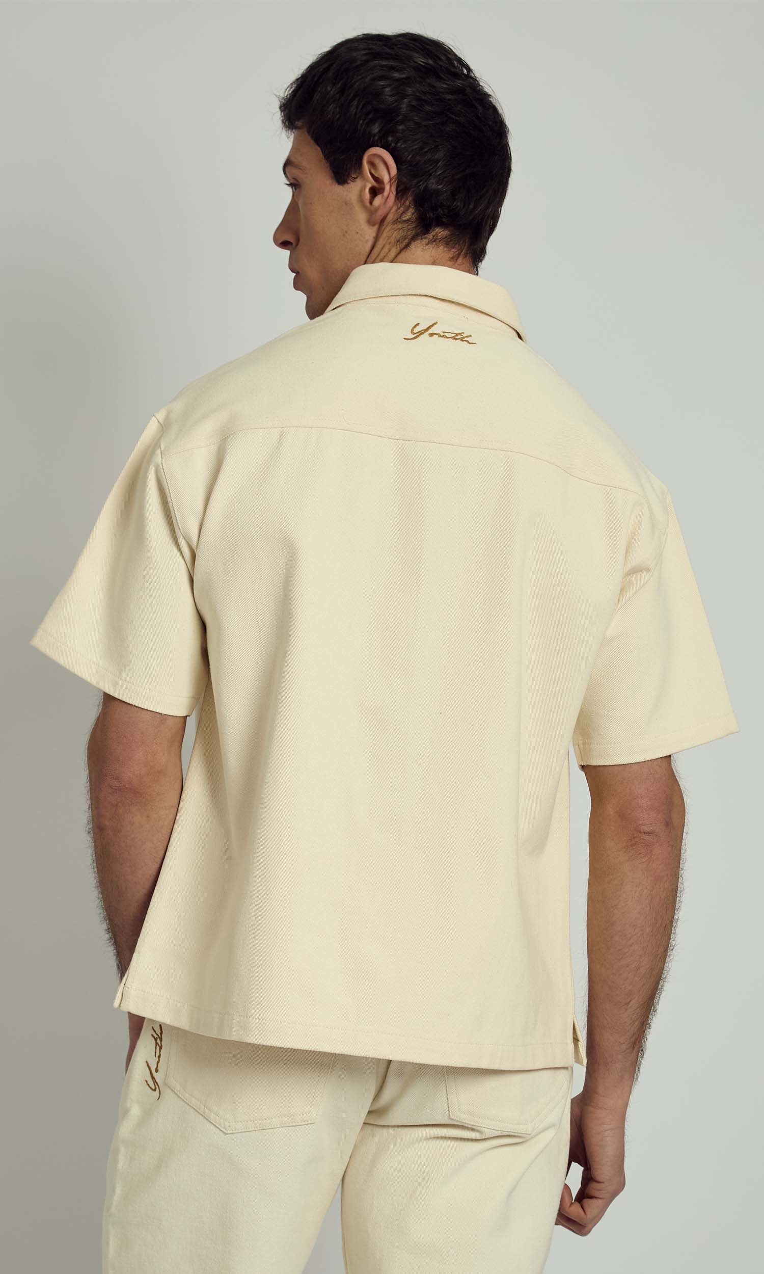Native Youth Men’s Jovan Ecru Embroidery Denim Shirt