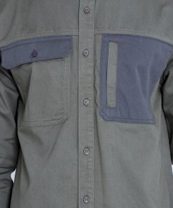 Introducing the Langbar, a classic long sleeve shirt reimagined with new utility details inspired by military wear. Features a tonal contrast pocket on one side and a side slip patch pocket on the other. Coming in an army green khaki colourway, designed to help you blend into autumnal outdoor settings.