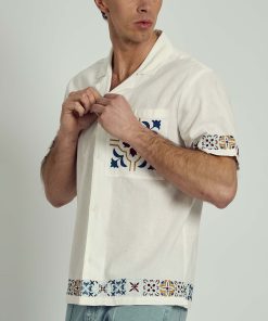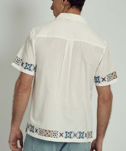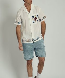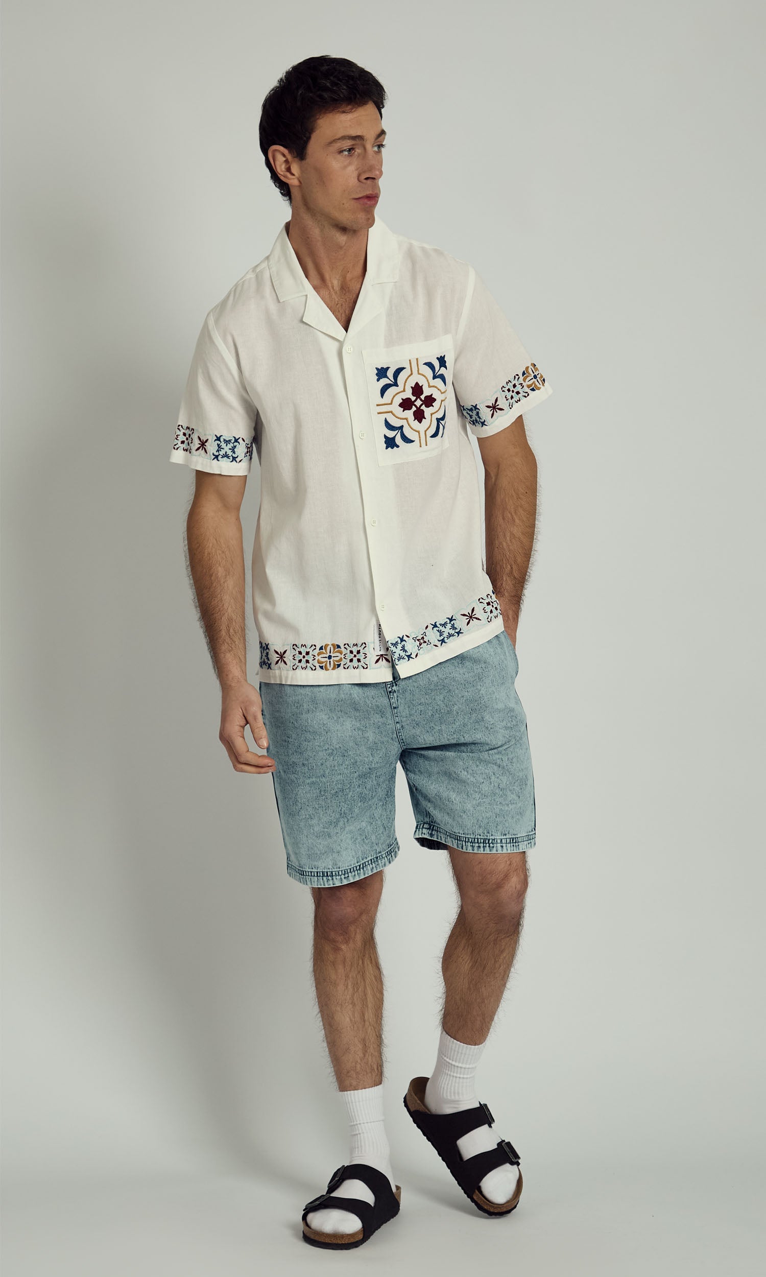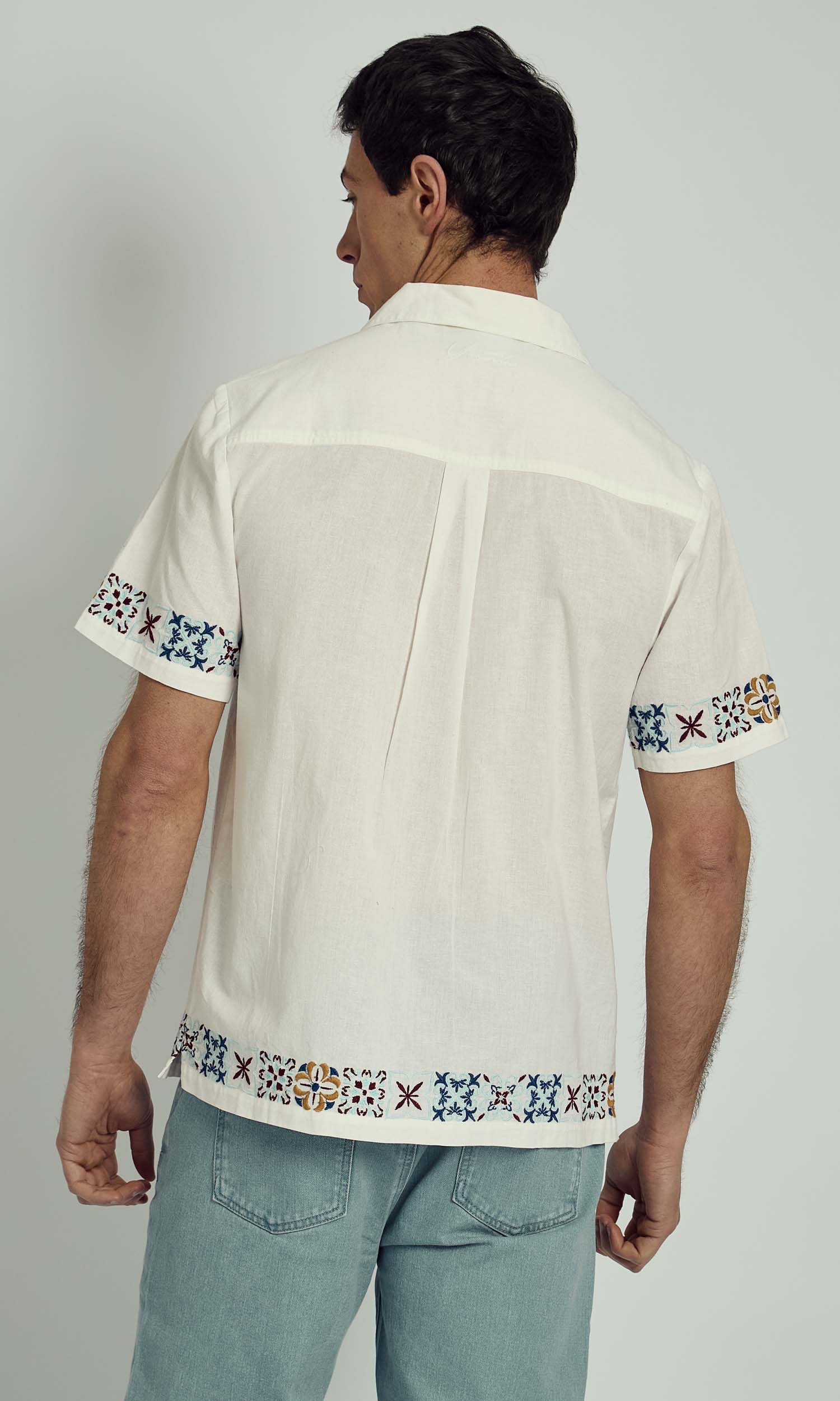 LOREK EMBROIDERED EDGE SHORT SLEEVE SHIRT IN WHITE