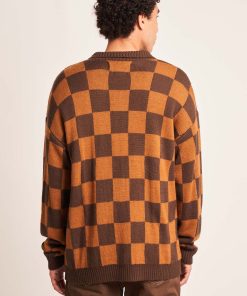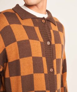 The Martel knit cardigan is made from a wool blend and cut for a relaxed fit. It features an all-over checker board pattern, faux wood button fastenings and spread collar.