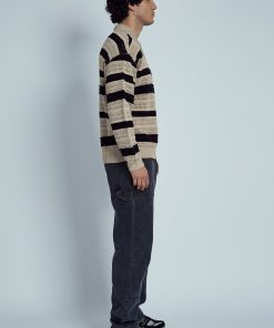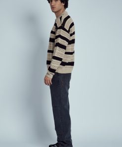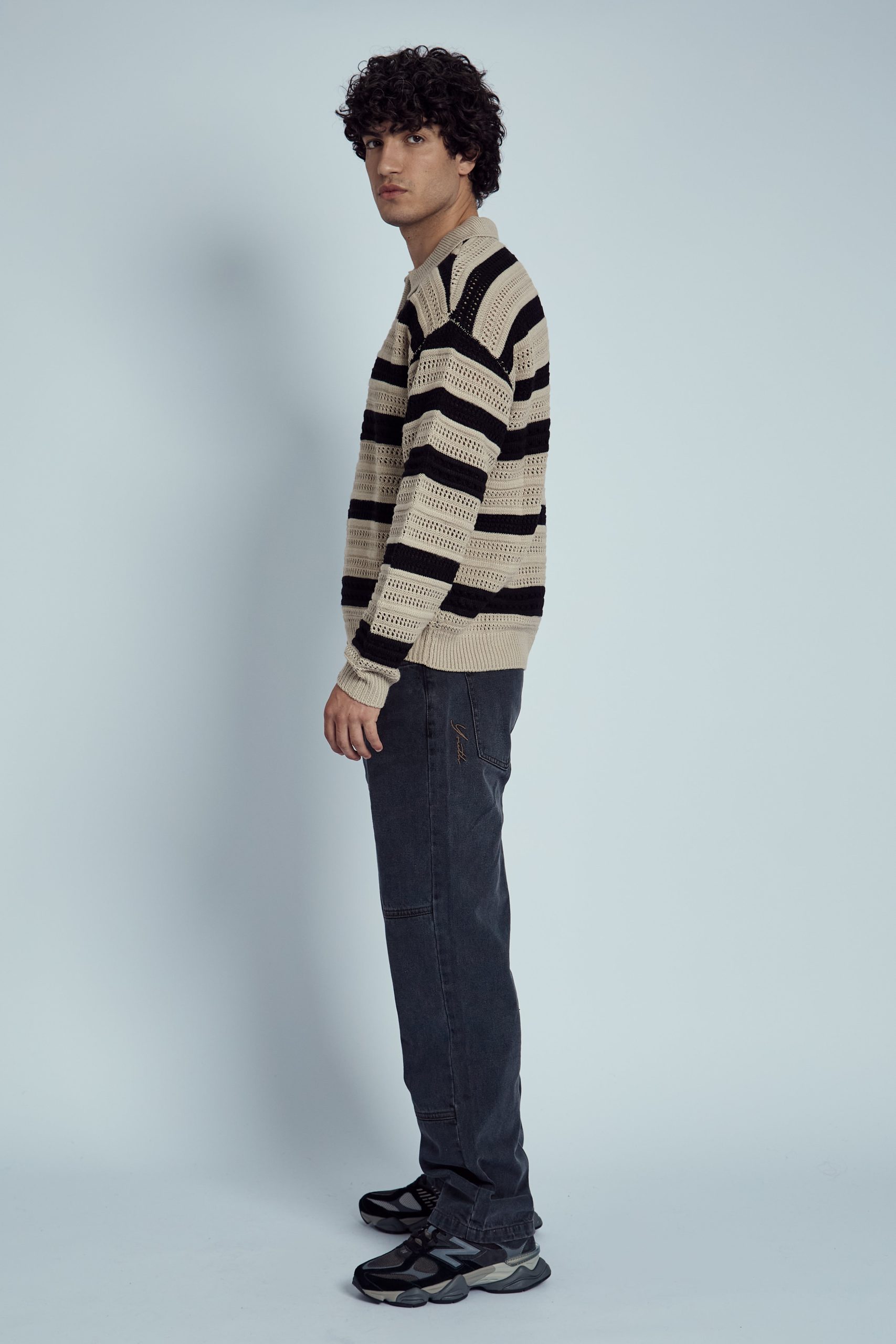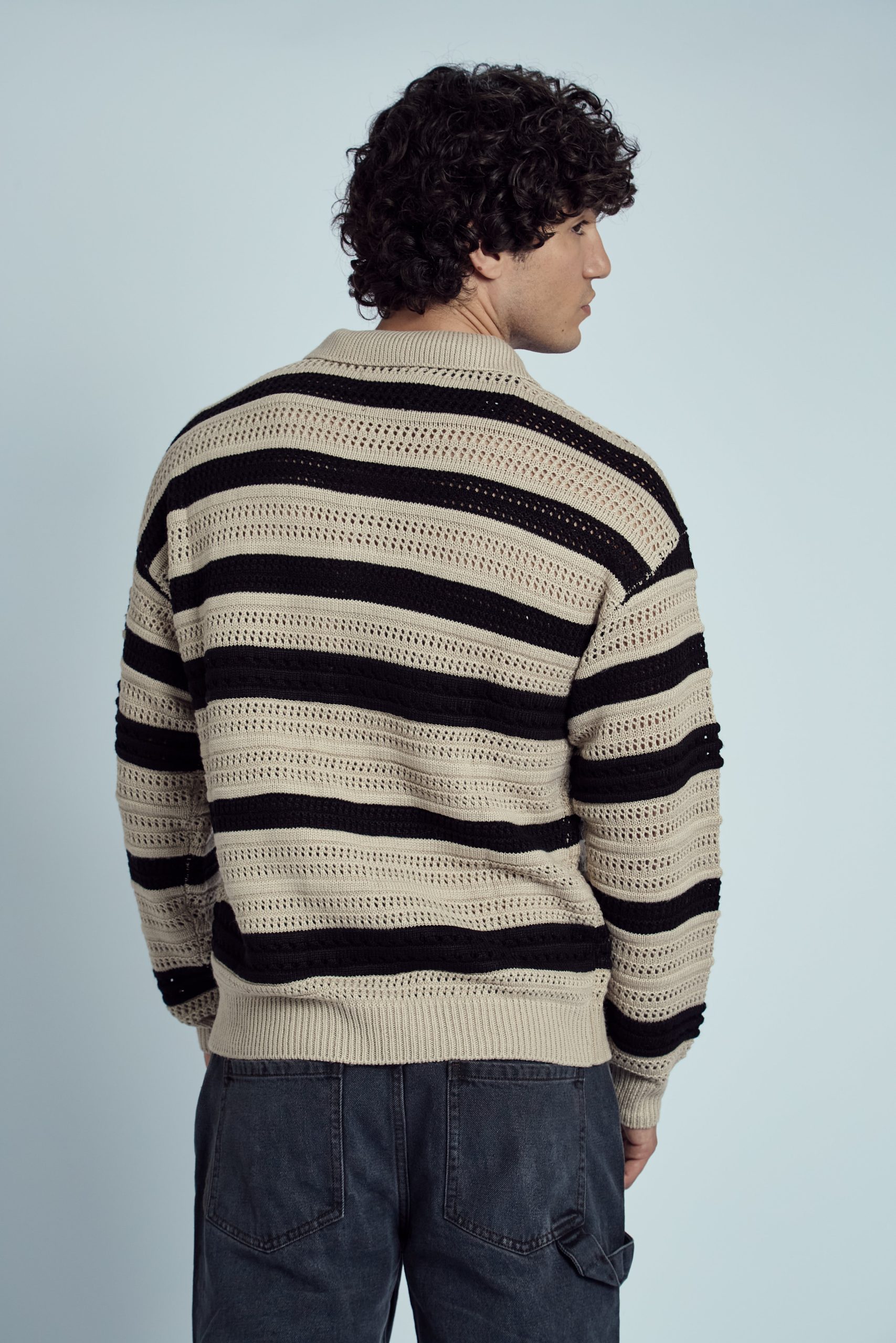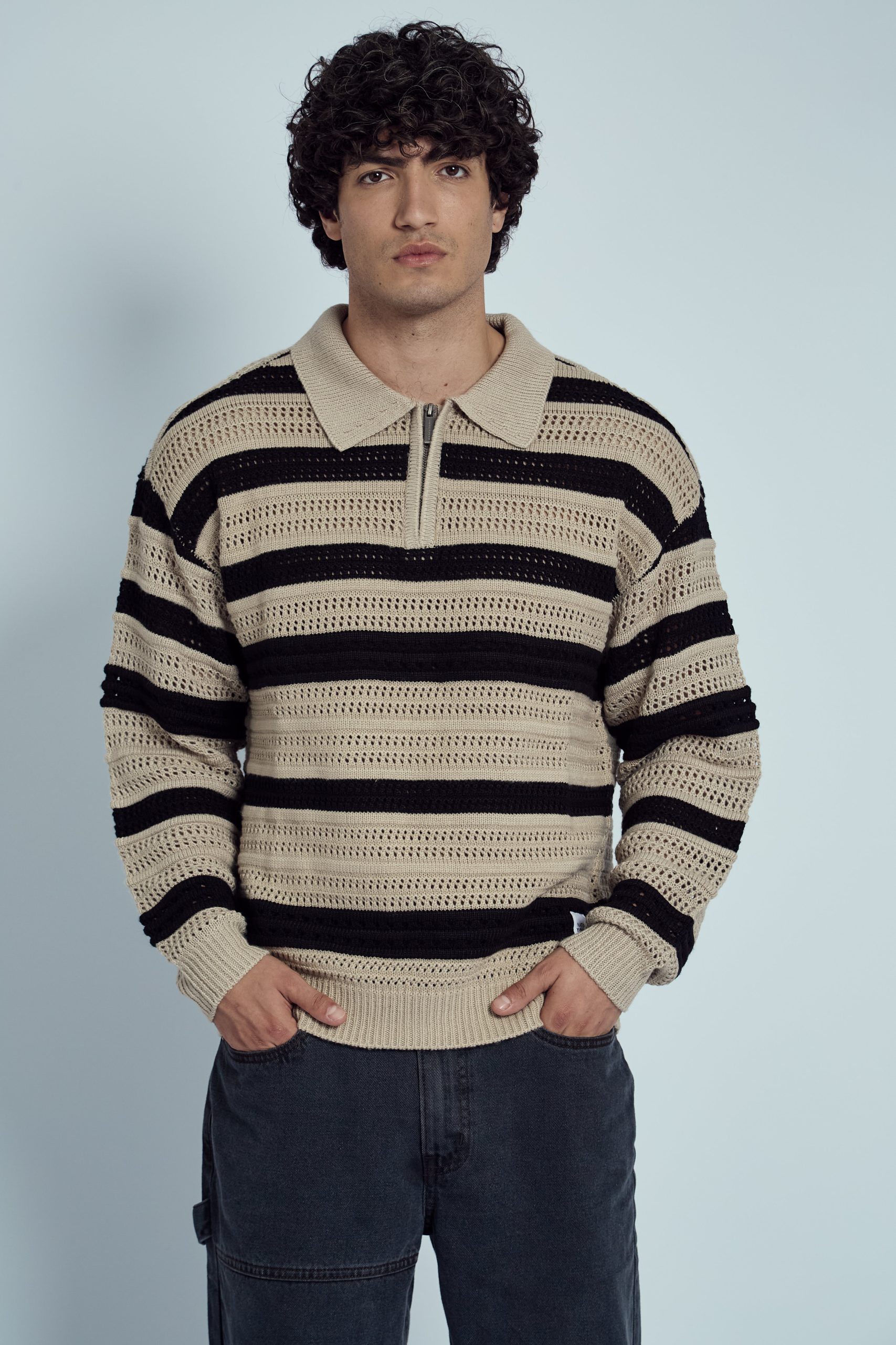MEADE KNITTED STRIPE JUMPER WITH ZIP POLO COLLAR