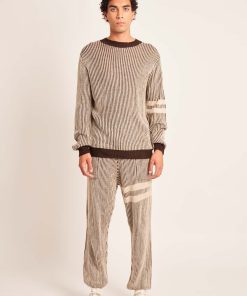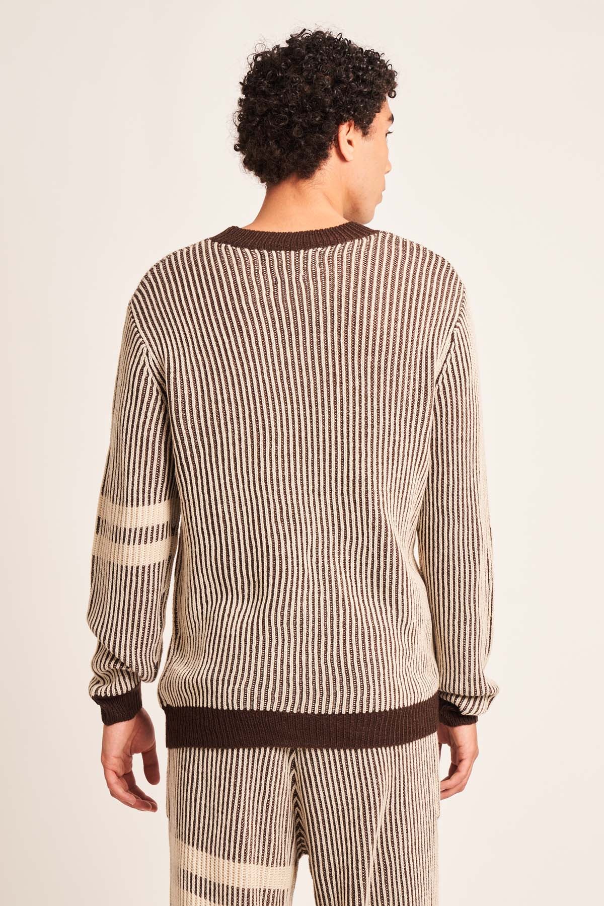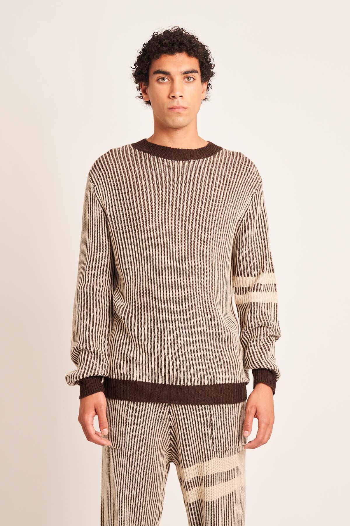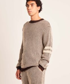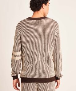 The Merrik knitted jumper is here to make it both sporty and cosy. Crafted from a two tone rib body it features contrast crew neck, cuffs and hem with double sports stripe to sleeve.