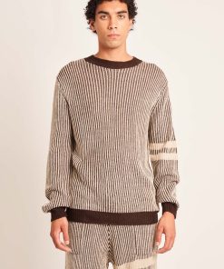 The Merrik knitted jumper is here to make it both sporty and cosy. Crafted from a two tone rib body it features contrast crew neck, cuffs and hem with double sports stripe to sleeve.