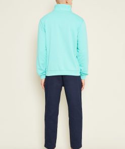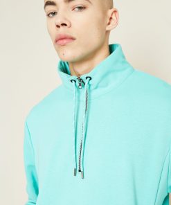 The Monsanto Half zip sweatshirt features a funnel neck with an angled back yoke, side entry pockets. Coming in a bright turquoise colourway ticking all of the summer trends this season.