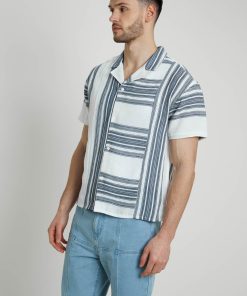 Introducing the Morton Mixed Stripe Boxy Fit Shirt, a modern take on classic elegance. With its short sleeves and straight hem, this shirt offers a relaxed yet refined silhouette that is perfect for both casual and semi-formal occasions.