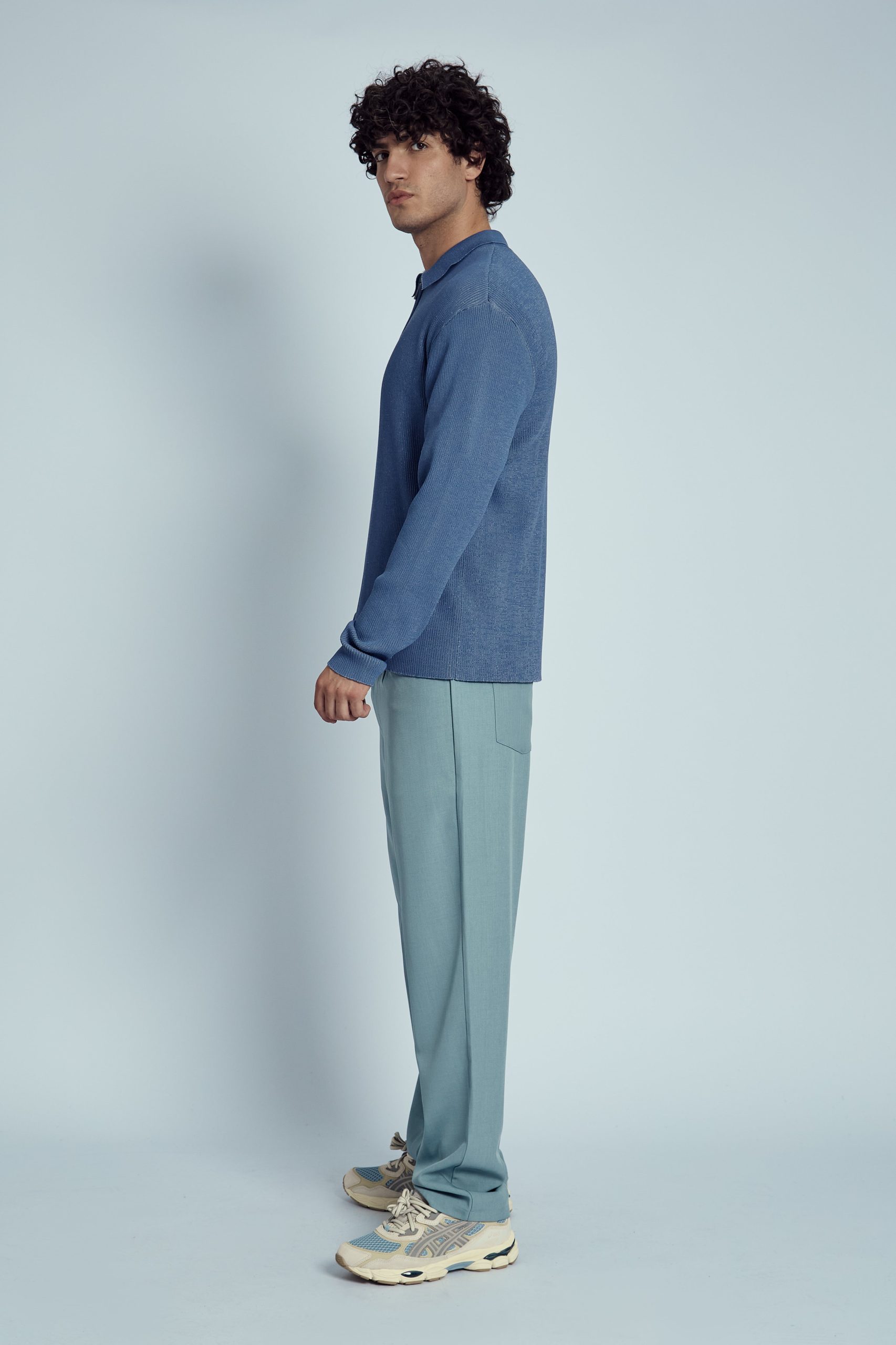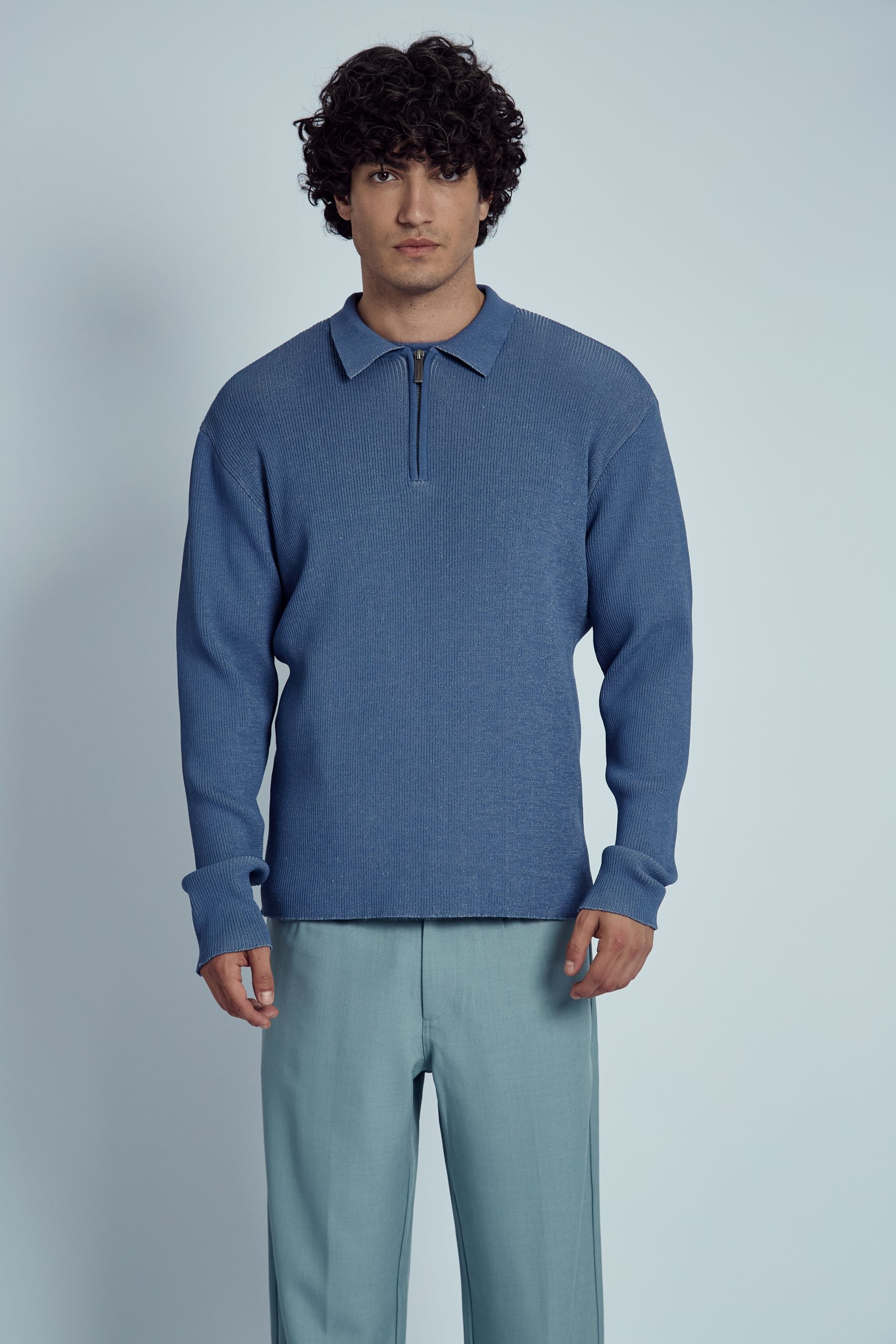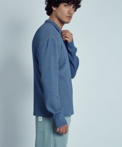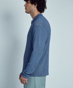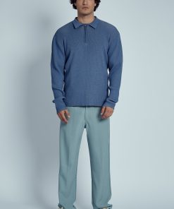 The Nable Knitted Rib Zip Polo Top offers a sleek, modern twist on the classic polo. Crafted from a blend of 80% viscose and 20% nylon, this blue ribbed knit polo features a zip-up collar for added versatility and style. The regular fit makes it a perfect choice for both casual and elevated looks.