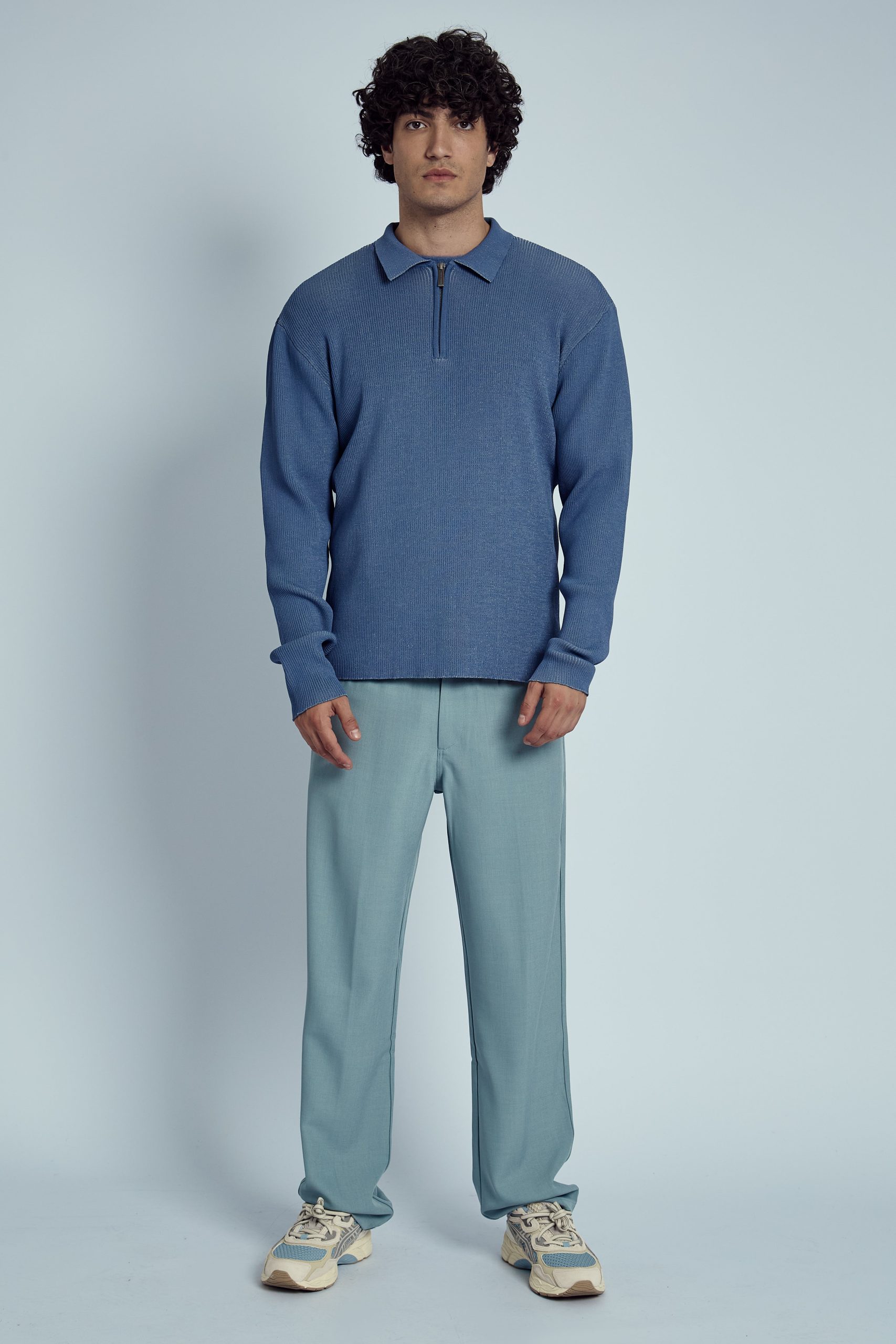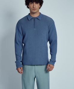 NABLE KNITTED RIB ZIP POLO TOP