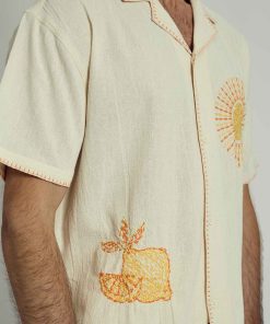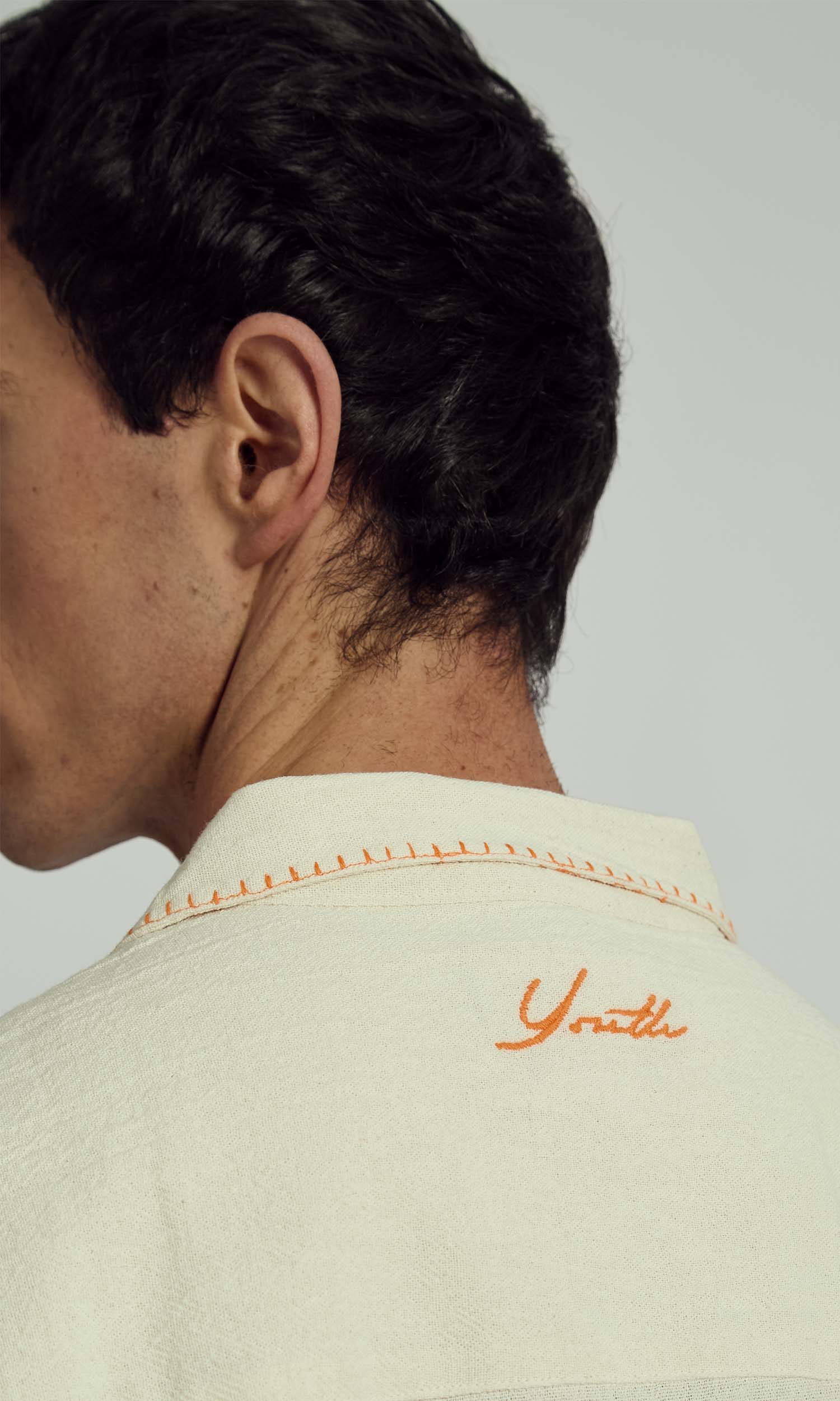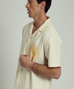 The Men’s Native Youth Boxy Shirt with Embroidery in Cream is a refined yet effortless wardrobe staple. Designed in a relaxed, boxy fit, this shirt is crafted from a lightweight fabric for breathability and comfort. The intricate embroidery detailing adds a touch of texture and subtle elegance, making it perfect for both casual and elevated looks. Featuring a revere collar and button-through front, it’s a versatile piece that pairs seamlessly with linen trousers or denim for a modern, laid-back aesthetic.
