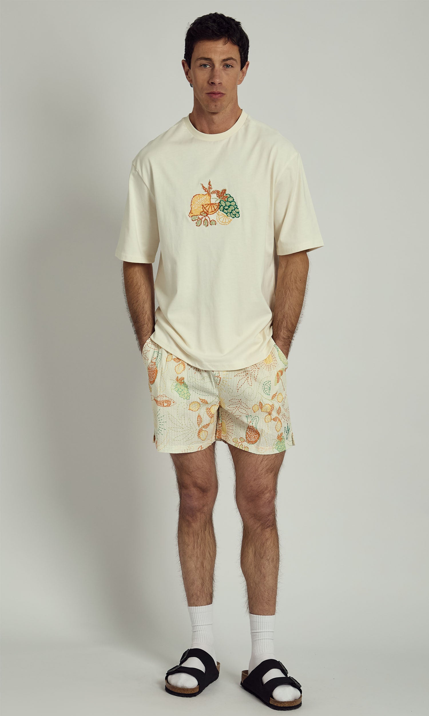 The Men’s Organic ‘Farmers Market’ Graphic T-Shirt blends sustainability with effortless style. Made from 100% organic cotton, this tee offers a soft, breathable feel while supporting eco-friendly fashion. The ‘Farmers Market’ graphic is enhanced with delicate embroidery, adding texture and a unique touch to the design. Featuring a relaxed fit, ribbed crew neckline, and short sleeves for everyday comfort. Perfect for casual wear—pair it with denim or relaxed trousers for an easy, laid-back look.