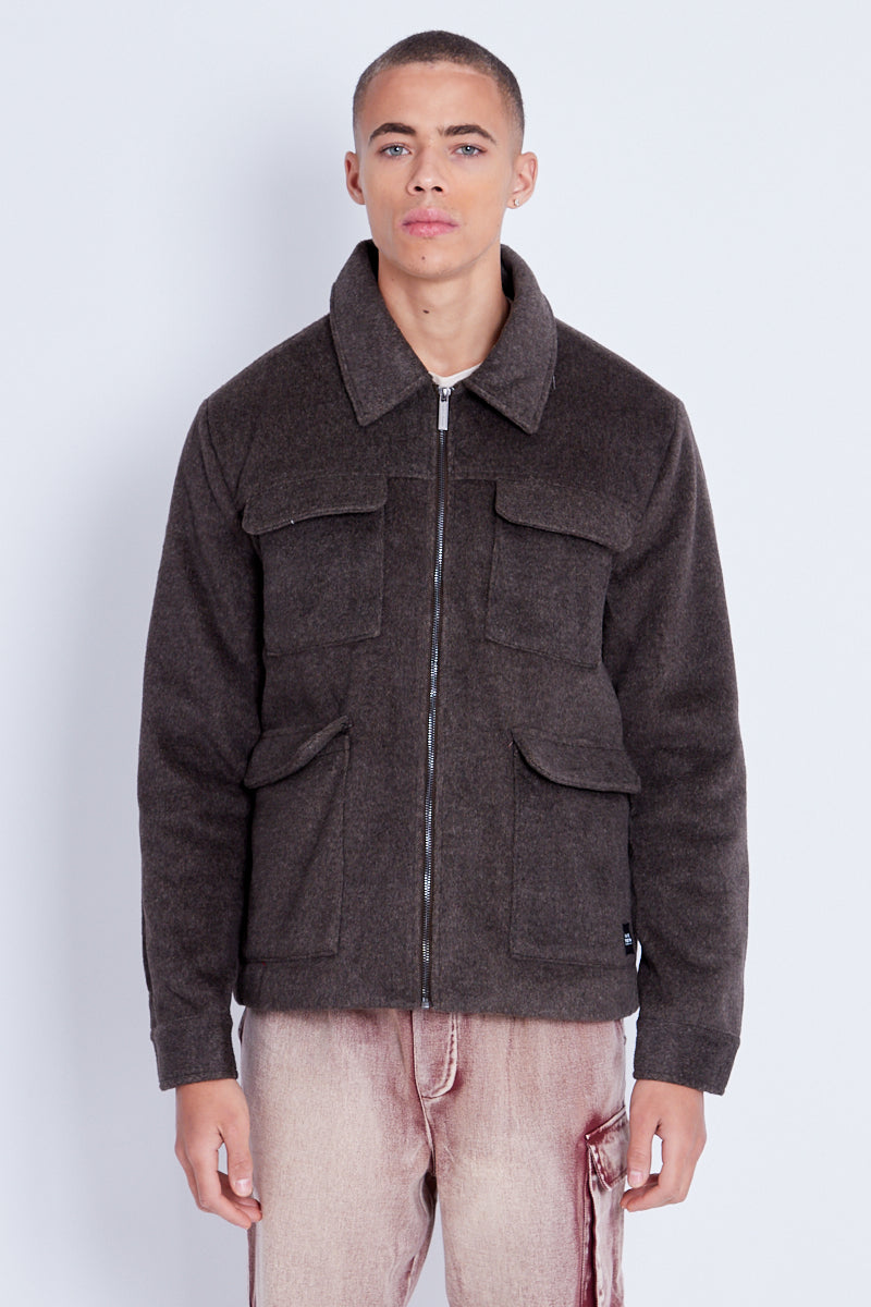 Introducing the Orsett, taking the coach jacket to new heights with multiple utility pocket detailing on a brown brushed wool silhouette.