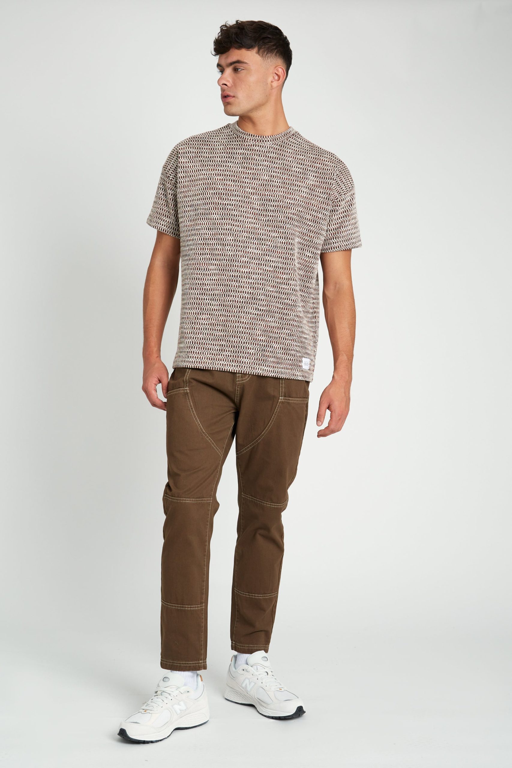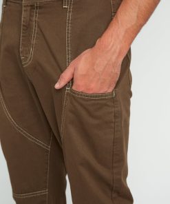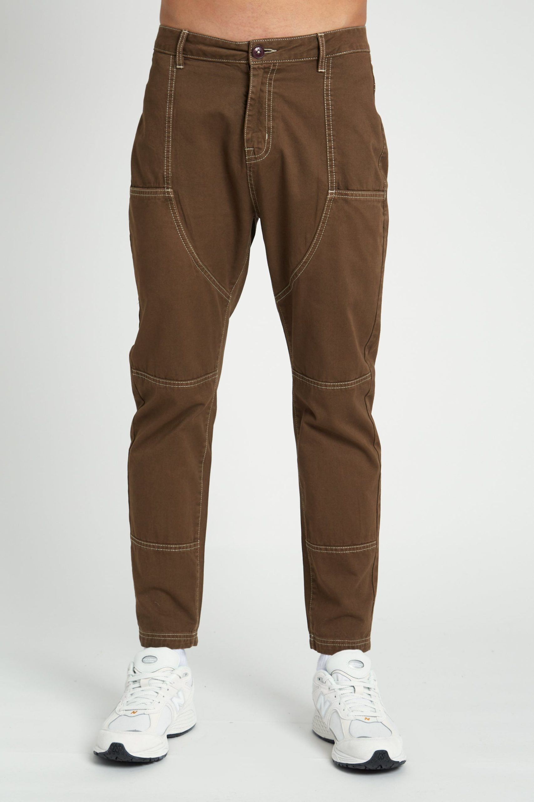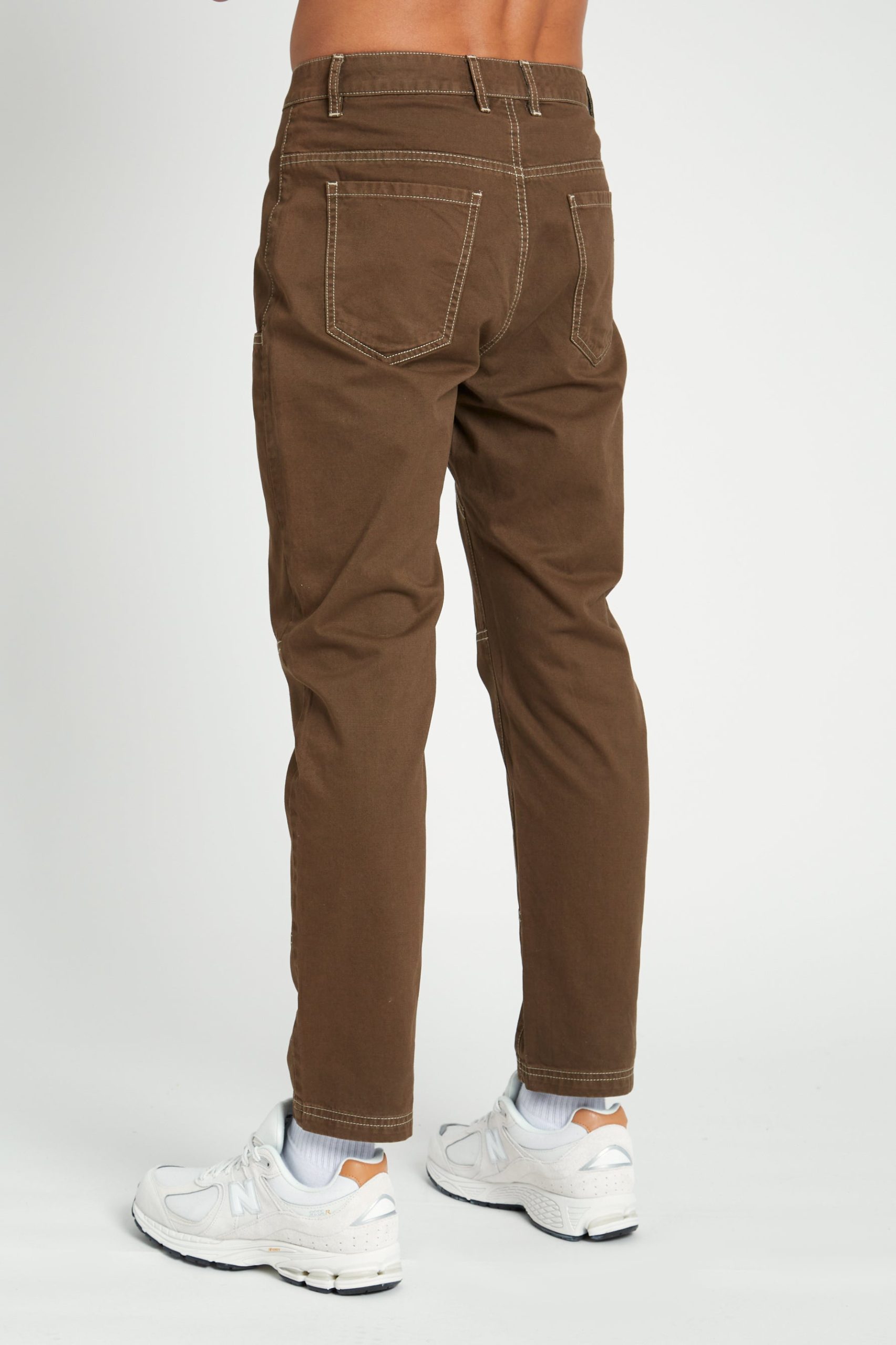 The Podrick cotton carpenter trouser is characterised by its front slip pockets and contrast stitching to seam detailing throughout the leg.