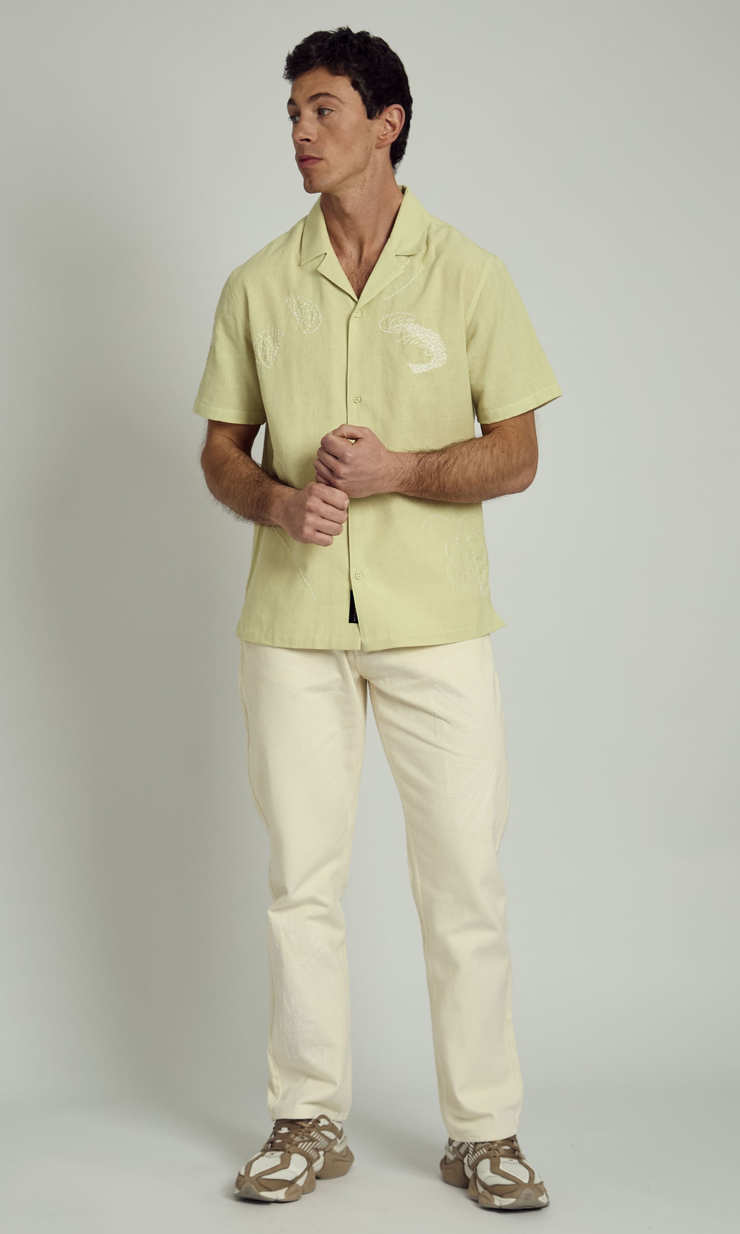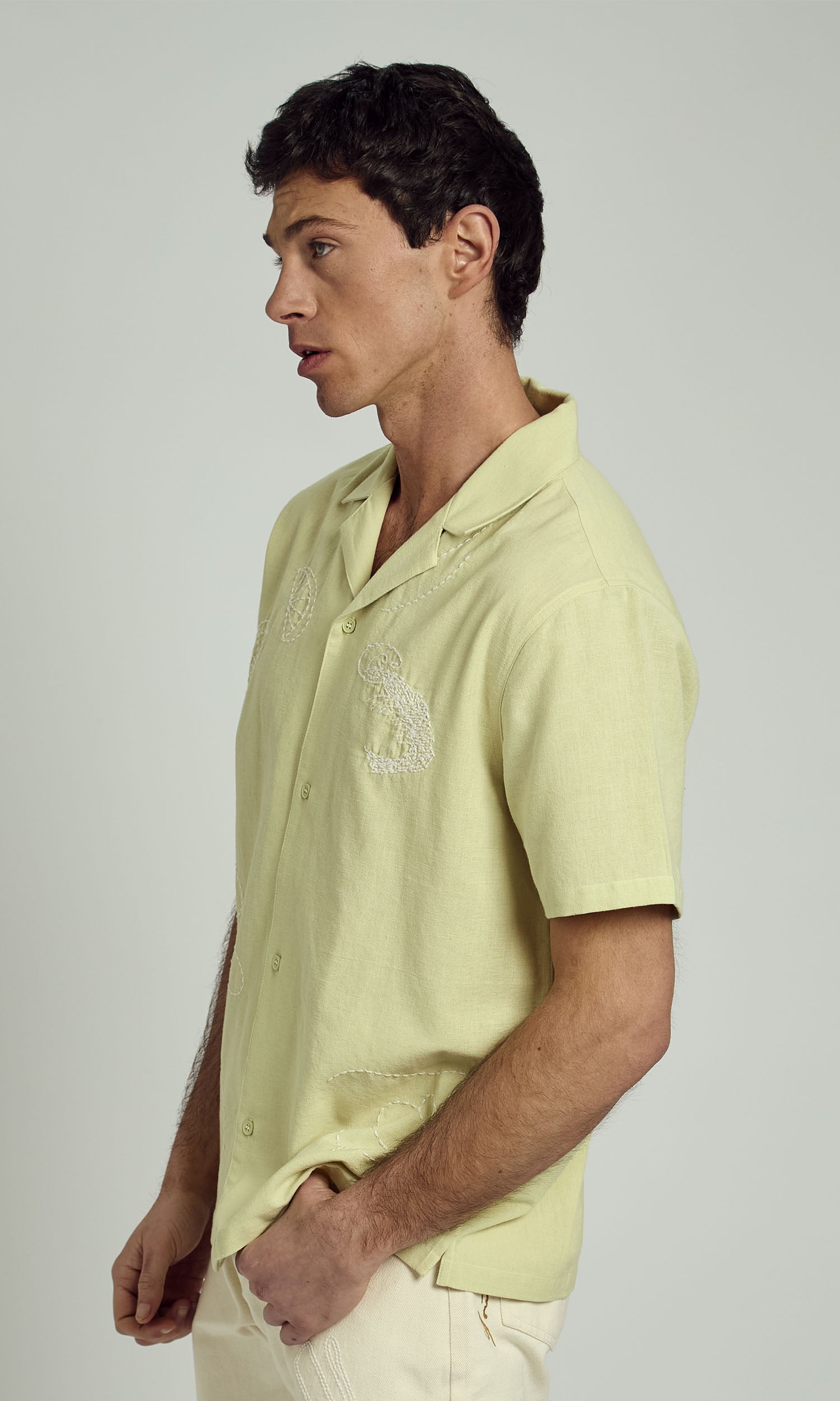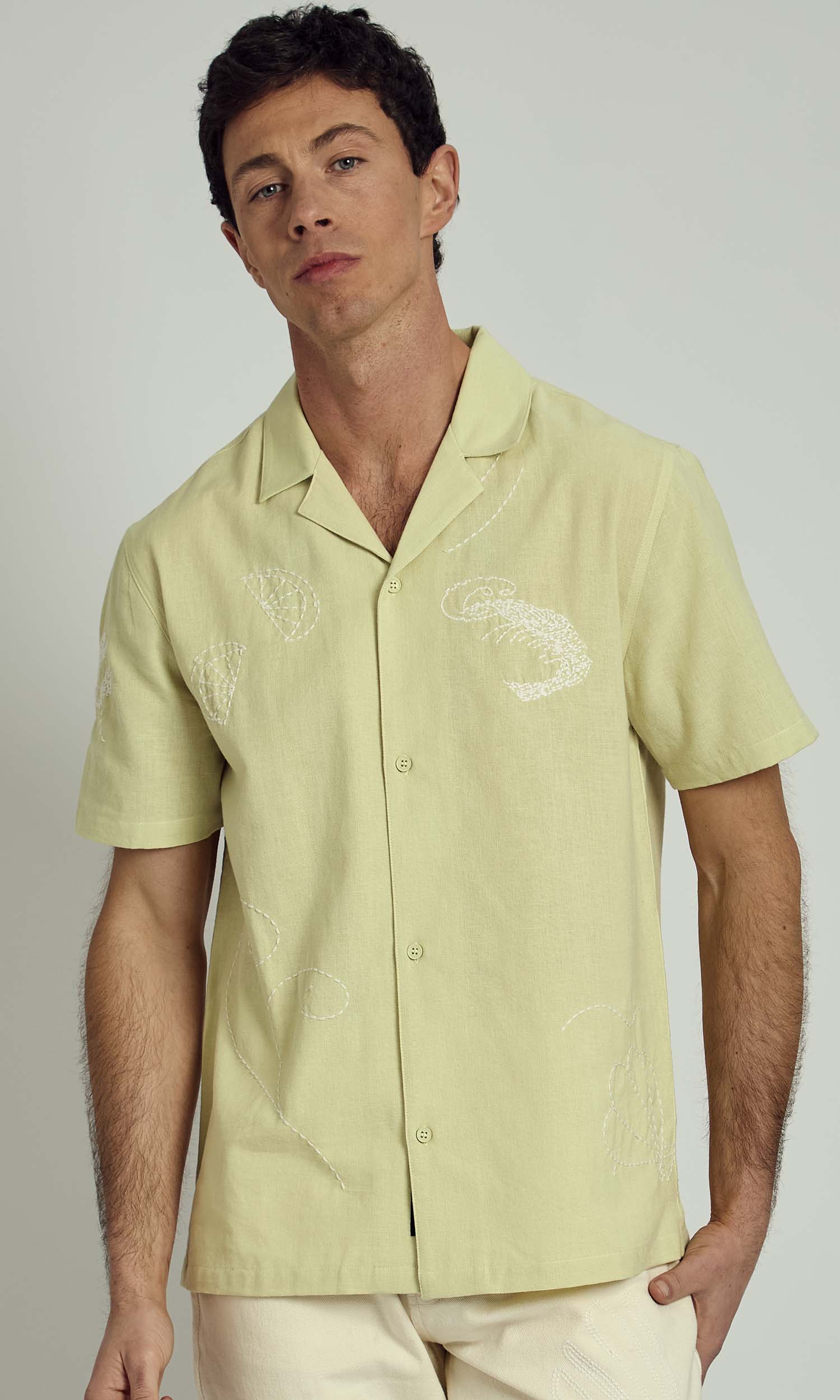 The Men’s Rhodes Revere Shirt by Native Youth is a timeless summer staple with a modern twist. Crafted from a lightweight and breathable fabric, this shirt features delicate embroidery details that add subtle texture and character. Designed with a relaxed, boxy fit, it includes a classic revere collar and button-through front, making it effortlessly stylish and easy to wear. Perfect for warm-weather layering, this shirt pairs well with both casual shorts and tailored trousers for a laid-back yet refined look.