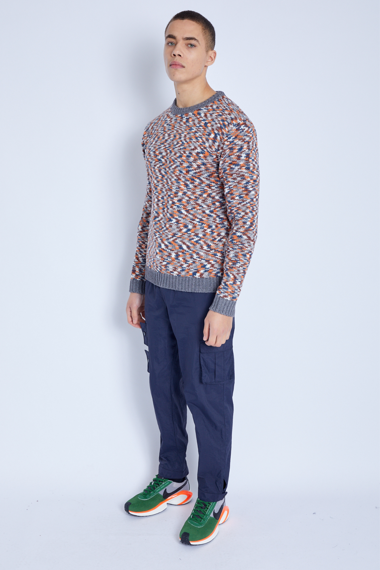 Introducing the Roar Sweater, knitted from a multicolour yarn, this statement knit is what your wardrobe is missing. The chunky knit features a contrast grey rib hem, collar and cuff. Finished with branded hem label.