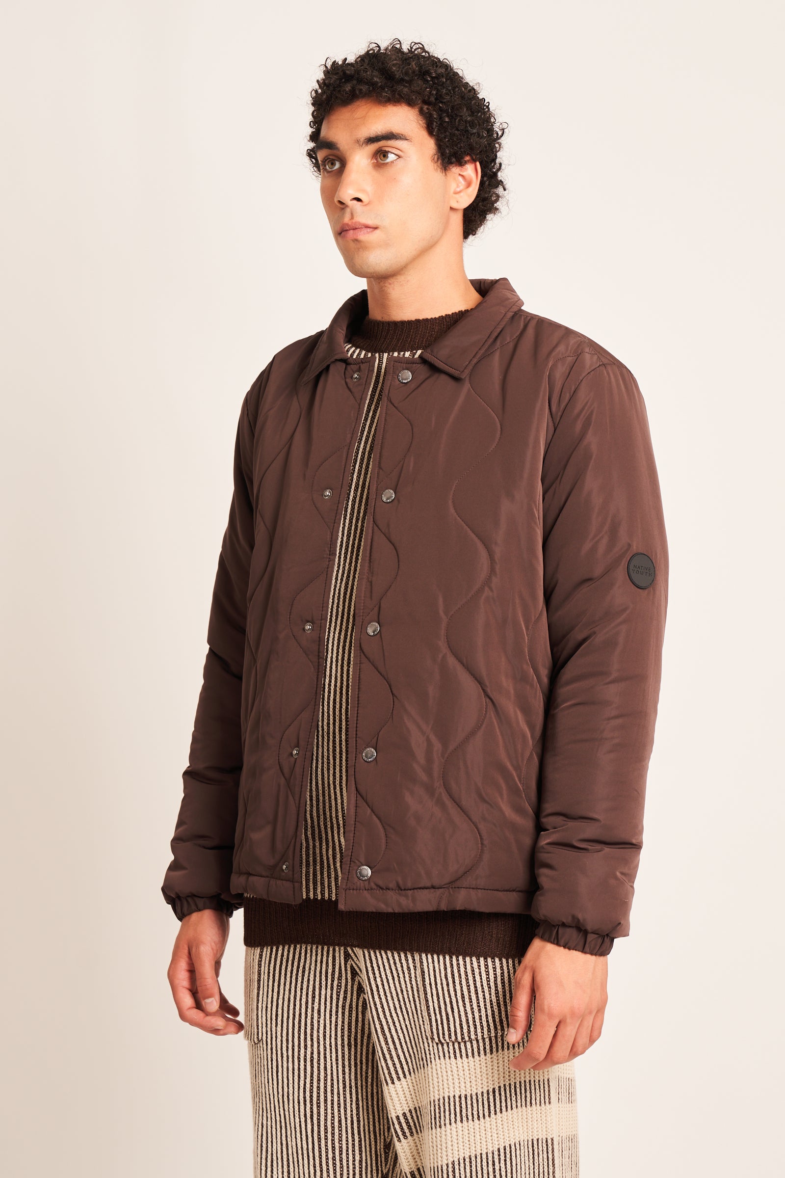 The Sterling puffer jacket is crafted with a lightweight shell and is padded for additional insulation. It features snap button front fastening and custom wave pattern quilting design.