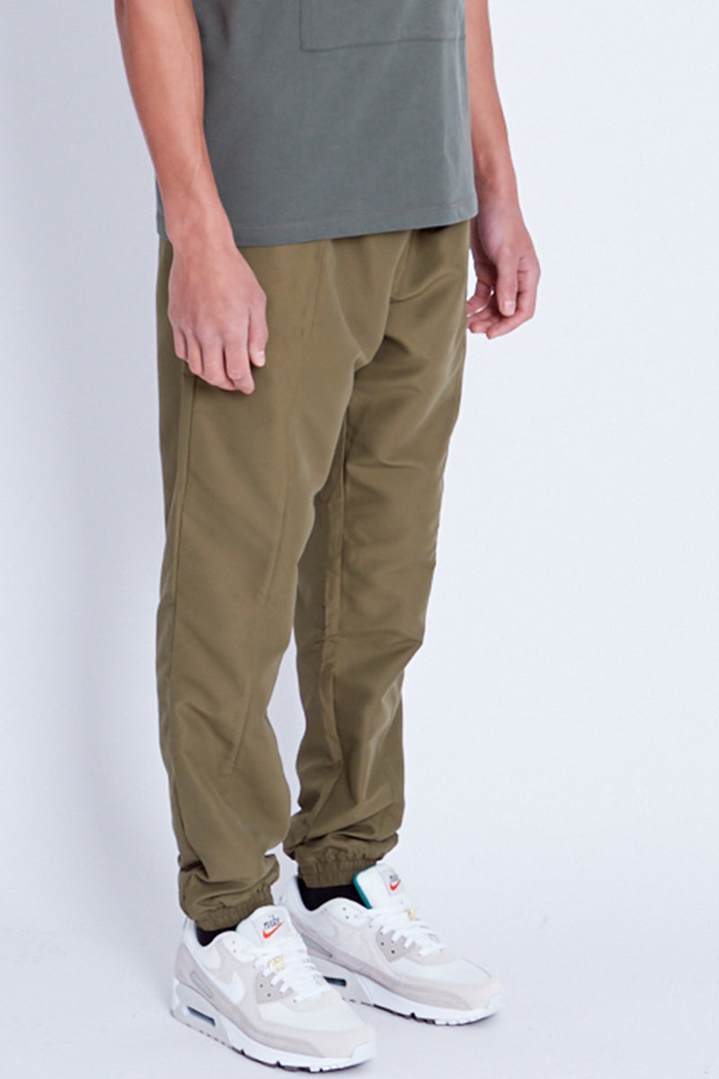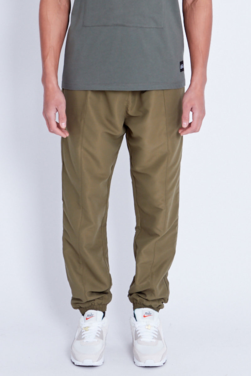 The Thornton pant is a well-constructed nylon shell jogger. Lined with polyester mesh, and finished with contrasting piping from waist to hem. An elasticated waistband allows for maximum comfort for the more relaxed wearer. Coming in a military khaki colorway.
