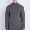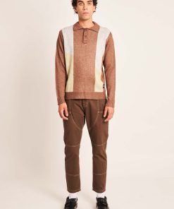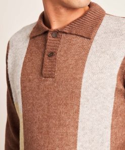 Introducing the Tobias knitted jumper, cut in a regular fit. Showcasing contrasting panels to front body and a button polo neck collar.
