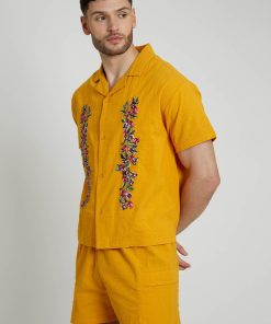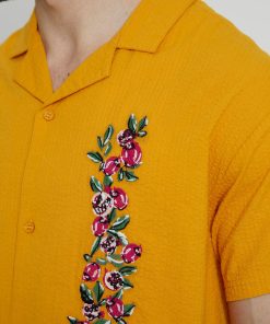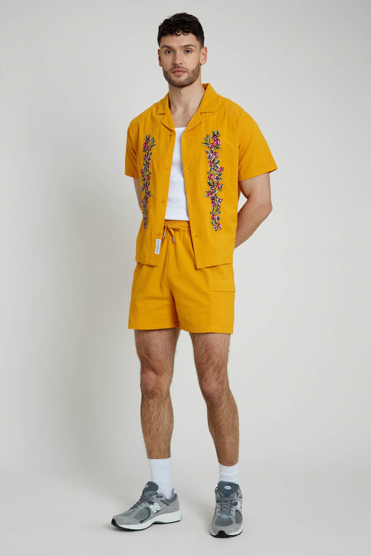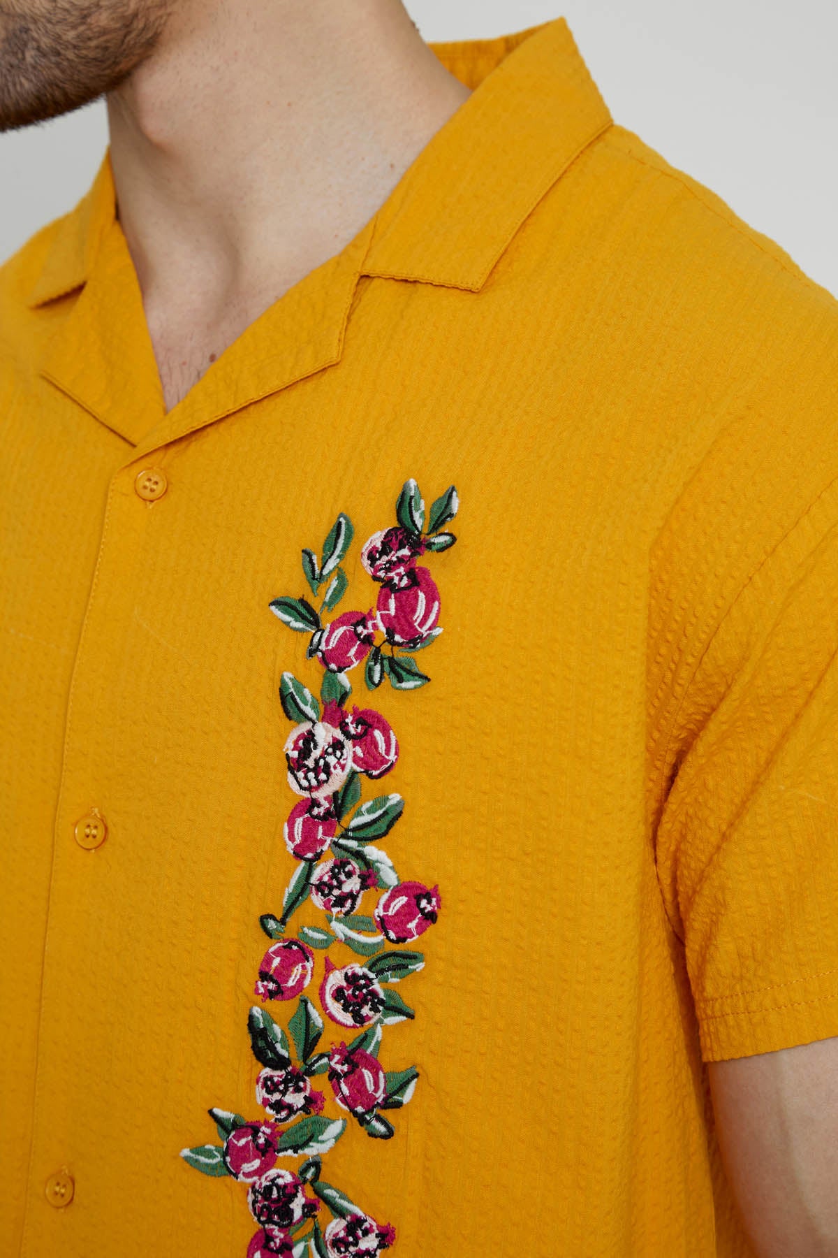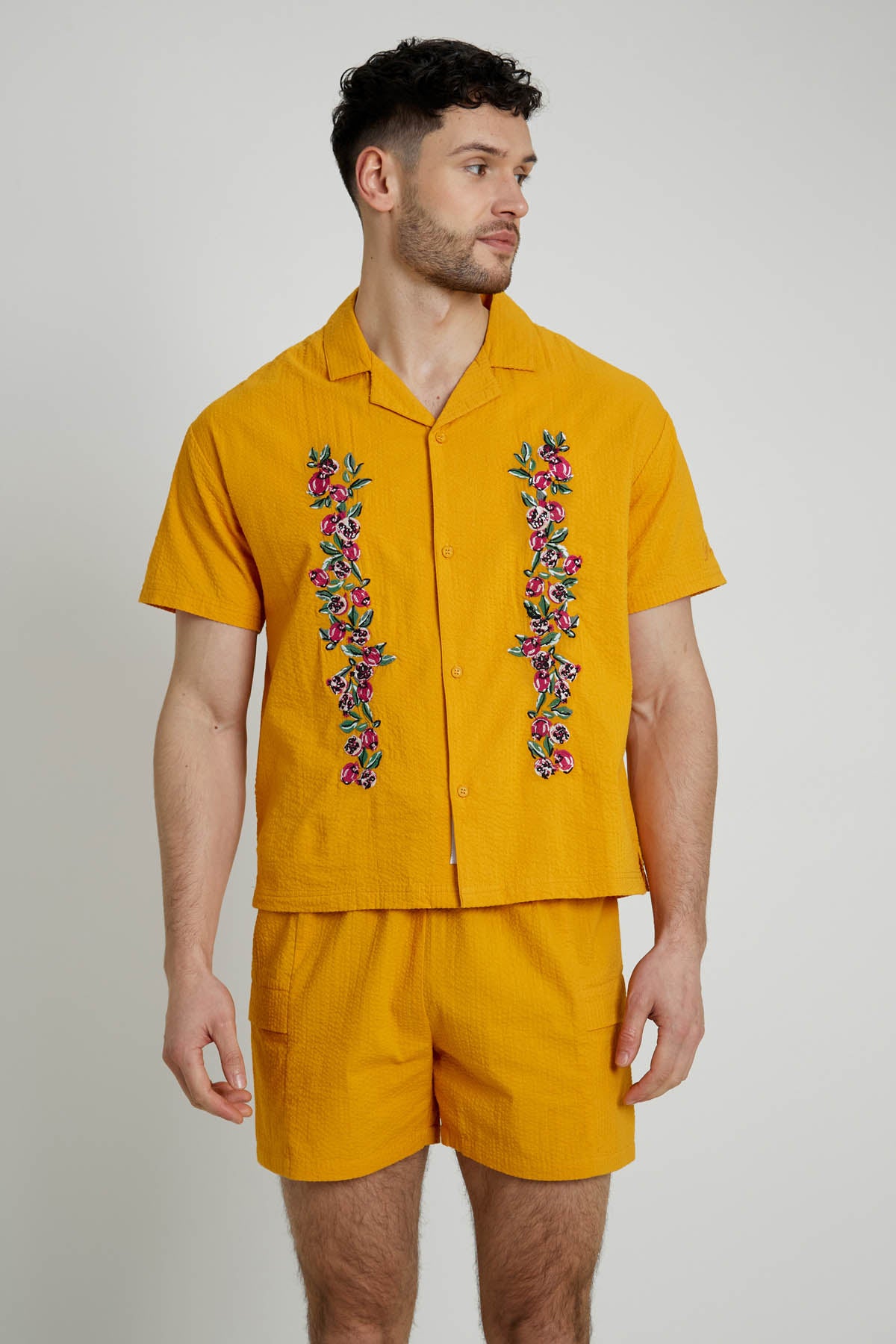 Elevate your look with the exquisite pomegranate embroidery detail on the front, adding a pop of colour and personality to this classic design. Whether paired with the matching shorts or your favourite jeans, the Vaughn Boxy Fit Seersucker Shirt is sure to make a statement wherever you go.
