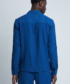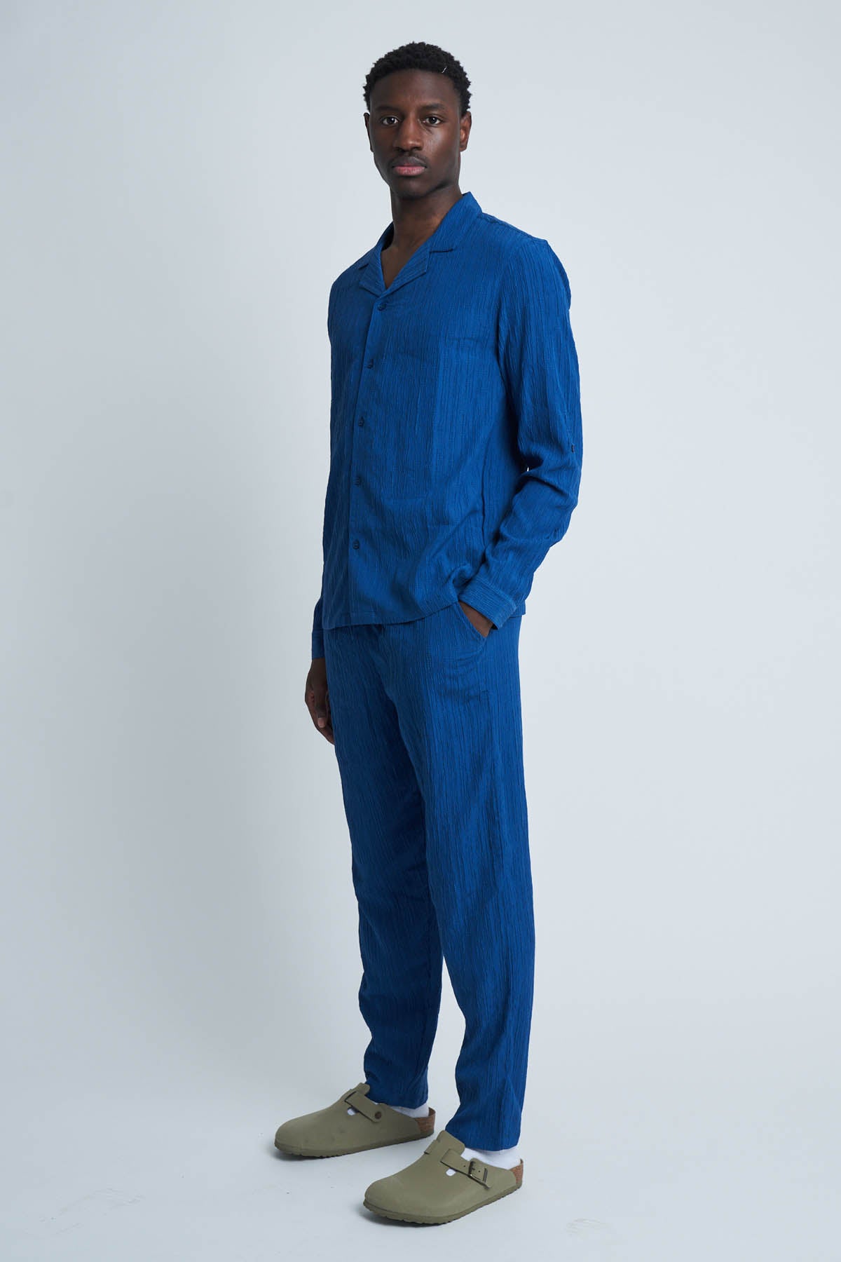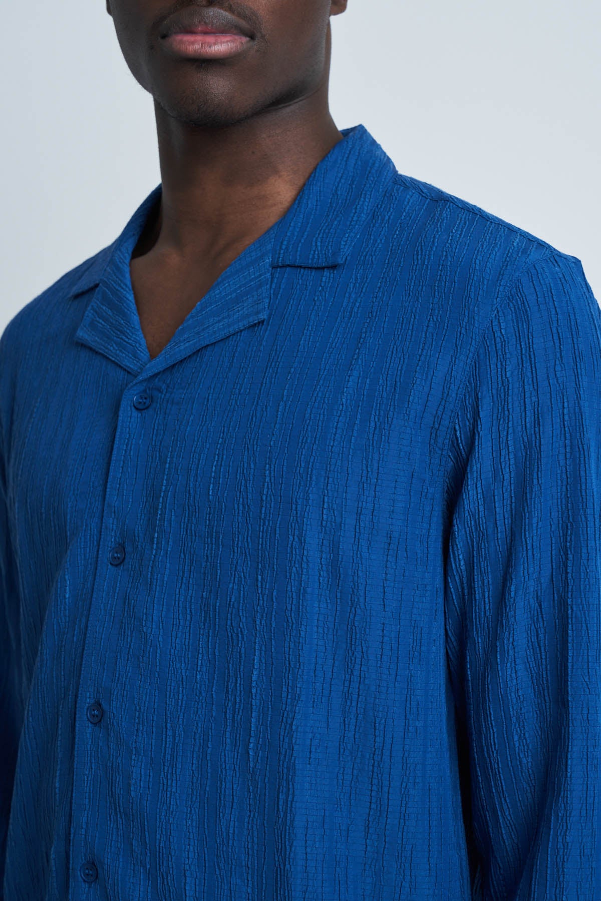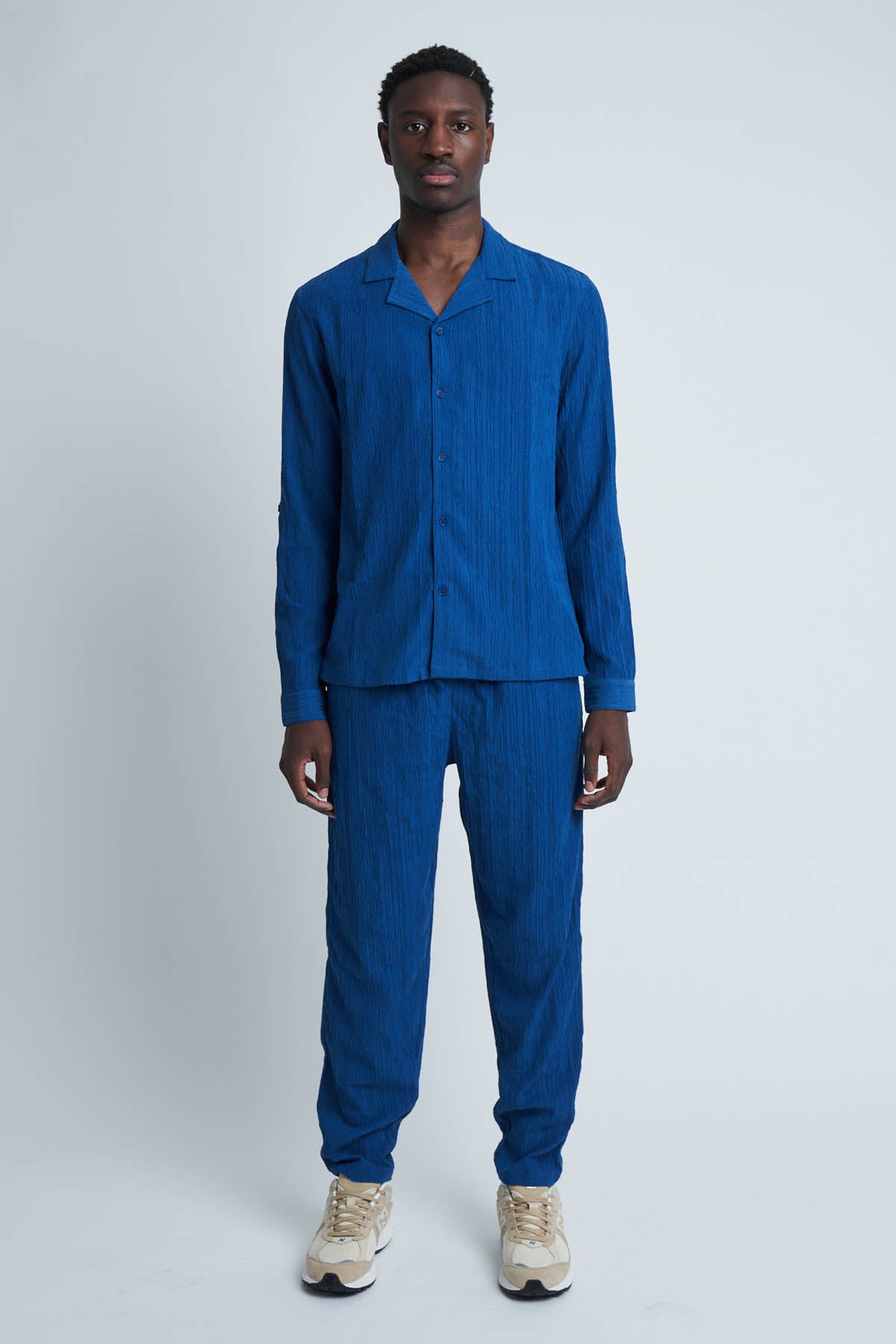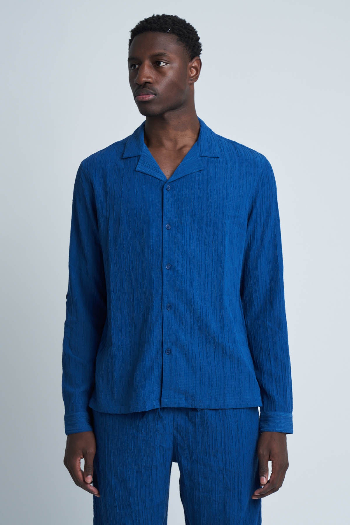 The WAJ SHIRT combines expert craftsmanship with modern design. Its loose-fit plisse fabric, camp collar, adjustable long sleeves, front button fastening, and straight hem make it a timeless staple piece.