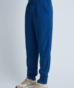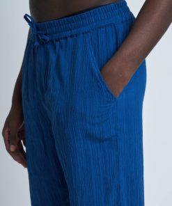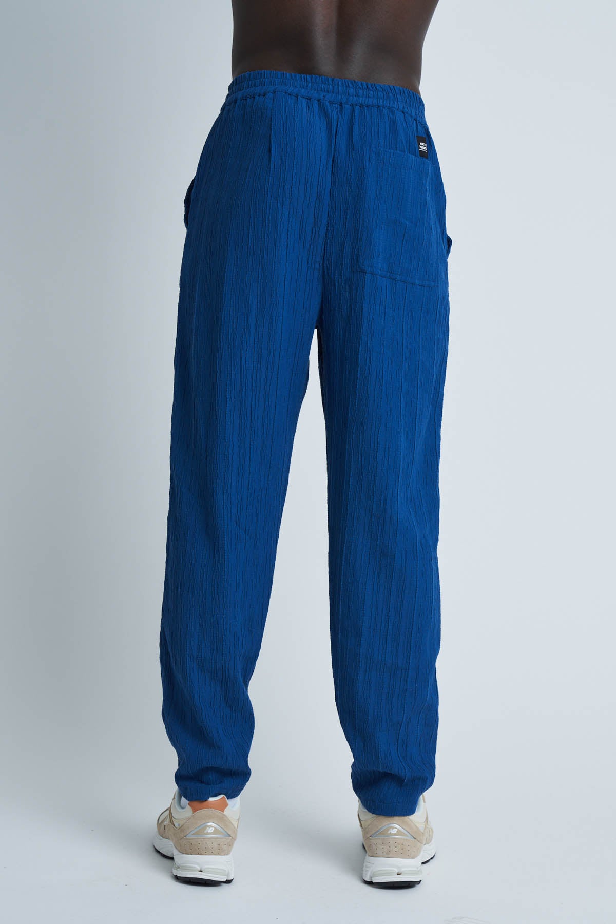 The Waj Trouser is a wardrobe essential for the modern man. Tailored for a relaxed fit with a drawstring waist and open hems, this trouser is crafted from a lightweight textured plisse fabric for a polished look.