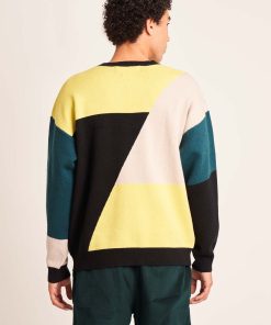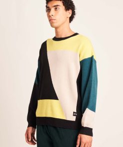 Introducing the Warren Knit – a patchwork intarsia knit jumper cut for a relaxed fit with drop shoulder.