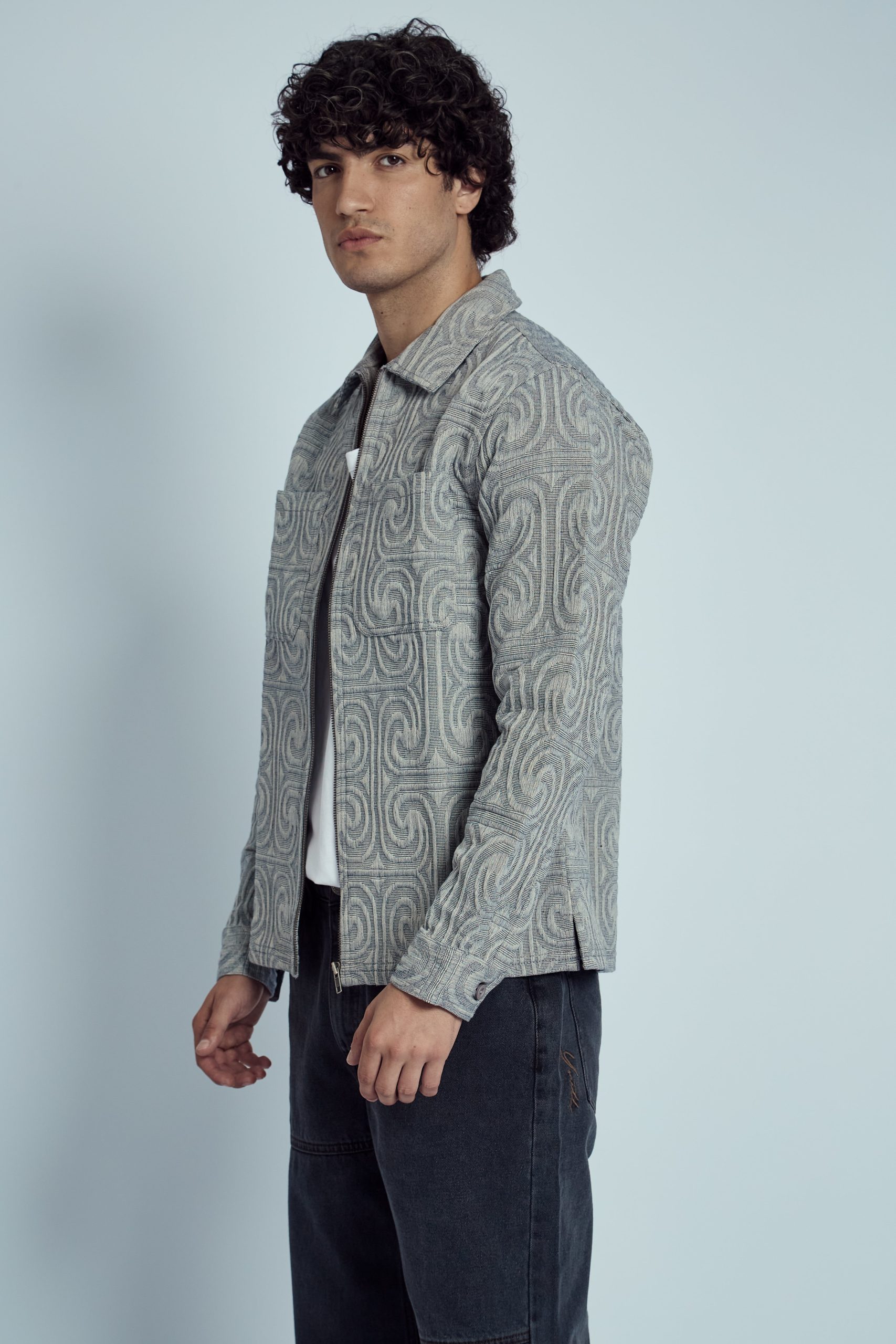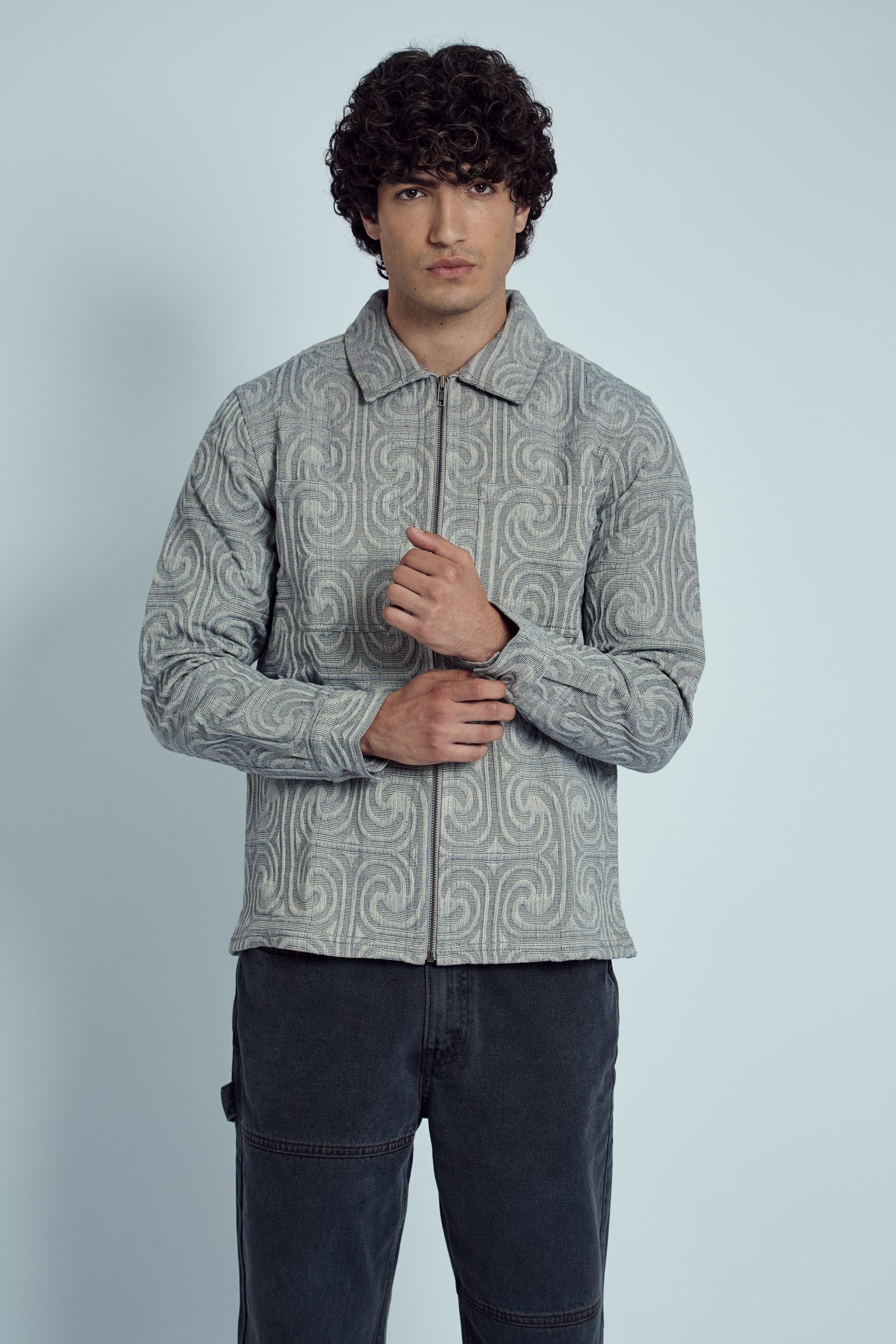 The timeless grey hue enhances its versatility, allowing you to pair it effortlessly with casual or semi-formal outfits. Whether worn over a lightweight knit or a simple tee, the Willa Zip Jacquard Jacket delivers an elevated touch to any look.