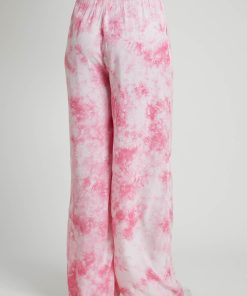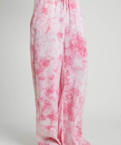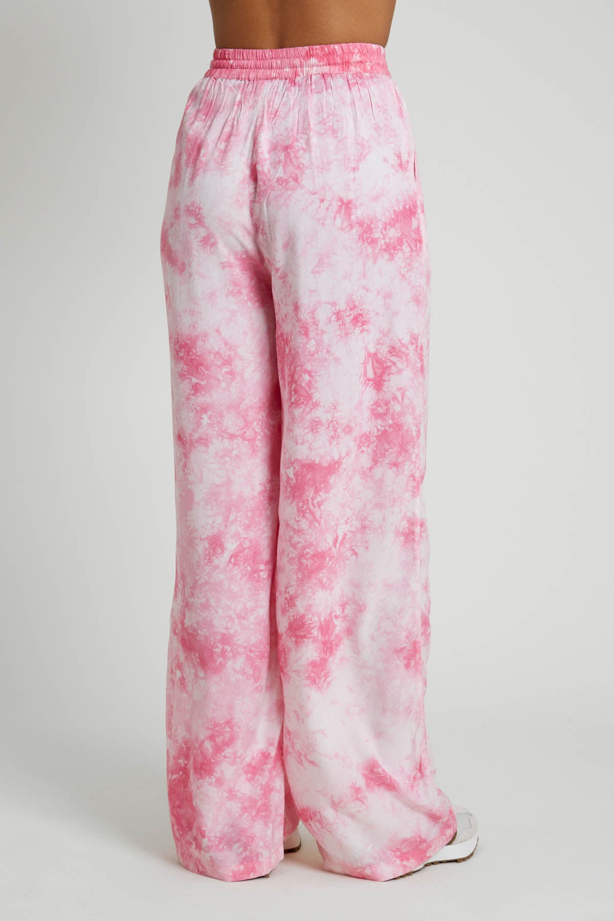 Introducing the Aida trouser, they are shaped to sit high on the waist and feature an elasticated waistband, adjustable drawstring, printed with a pink tie-dye finish and a loose leg.